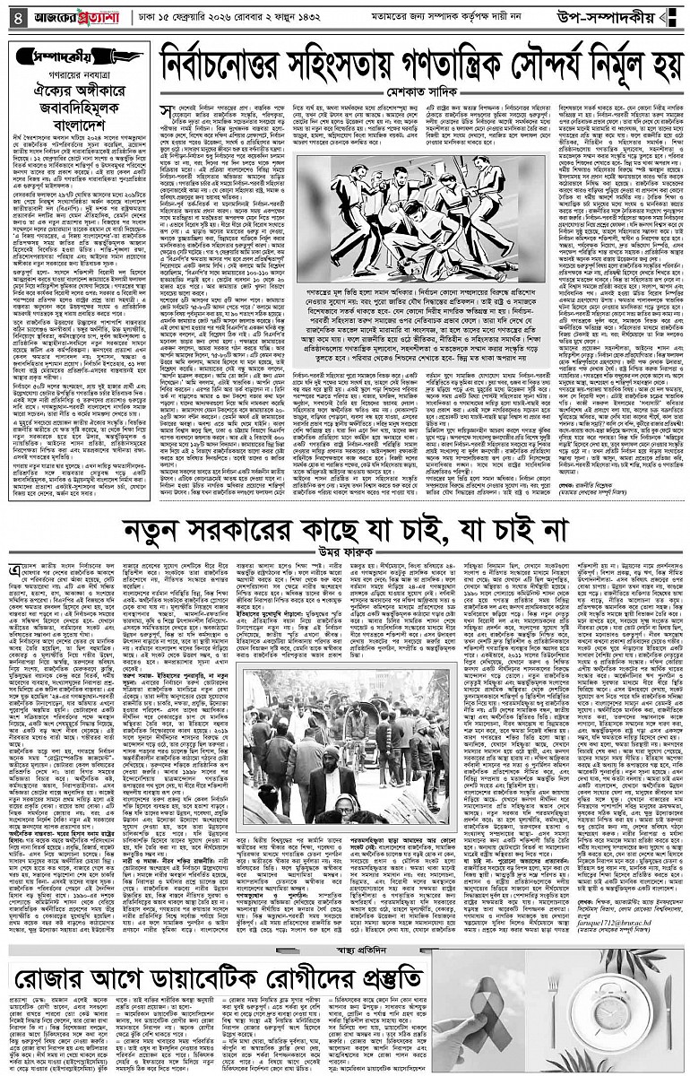 বর্ষ ৩৩ সংখ্যা ২৮৬ Page: 4 February 15, 2026 রোববার ১৫ ফেব্রুয়ারি ২০২৬ ঢাকা ২ ফাল্গুন ১৪৩২ বঙ্গাব্দ ২৬ শাবান ১৪৪৭ রেজি.নং-ডিএ-১৩৯৯ Page 1Page 2Page 3Page 4Page 5Page 6Page 7Page 8 Thumbnails × বর্ষ ৩৩ সংখ্যা ২৮৬ পৃষ্ঠা-১।-প্রথম-পাতাপৃষ্ঠা-২।-দেশের-খবরপৃষ্ঠা-৩।-বিদেশের-খবরপৃষ্ঠা-৪।-উপ-সম্পাদকীয়-পৃষ্ঠা-৫।-বাণিজ্যপৃষ্ঠা-৬।-খেলাধুলাপৃষ্ঠা-৭।-খবরপৃষ্ঠা-৮।-শেষের-পাতা << First << 3 4 >> Last >> Hide পৃষ্ঠা-১।-প্রথম-পাতাপৃষ্ঠা-২।-দেশের-খবরপৃষ্ঠা-৩।-বিদেশের-খবরপৃষ্ঠা-৪।-উপ-সম্পাদকীয়-পৃষ্ঠা-৫।-বাণিজ্যপৃষ্ঠা-৬।-খেলাধুলাপৃষ্ঠা-৭।-খবরপৃষ্ঠা-৮।-শেষের-পাতা পৃষ্ঠা-৪।-উপ-সম্পাদকীয়-