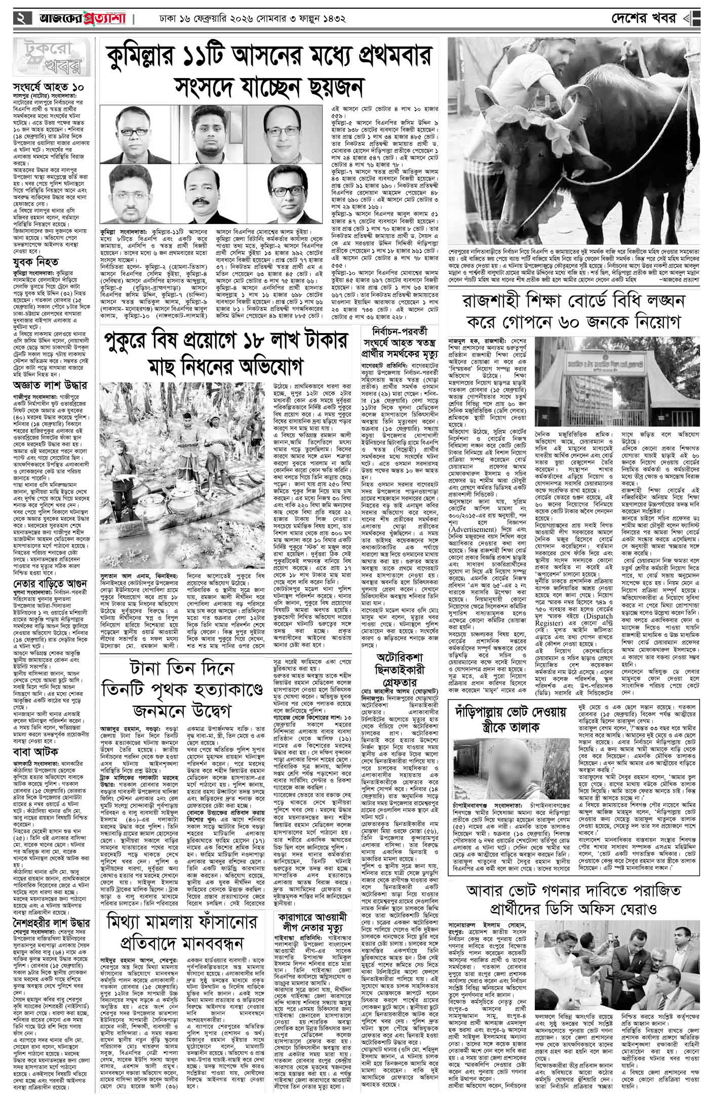 বর্ষ ৩৩ সংখ্যা ২৮৭ Page: 2 February 16, 2026 সোমবার ১৬ ফেব্রুয়ারি ২০২৬ ঢাকা ৩ ফাল্গুন ১৪৩২ বঙ্গাব্দ ২৭ শাবান ১৪৪৭ রেজি.নং-ডিএ-১৩৯৯ Page 1Page 2Page 3Page 4Page 5Page 6Page 7Page 8 Thumbnails × বর্ষ ৩৩ সংখ্যা ২৮৭ পৃষ্ঠা-১।-প্রথম-পাতাপৃষ্ঠা-২।-দেশের-খবরপৃষ্ঠা-৩।-বিদেশের-খবরপৃষ্ঠা-৪।-উপ-সম্পাদকীয়-পৃষ্ঠা-৫।-বিজ্ঞান-ও-প্রযুক্তিপৃষ্ঠা-৬।-খেলাধুলাপৃষ্ঠা-৭।-খবরপৃষ্ঠা-৮।-শেষের-পাতা << First << 1 2 >> Last >> Hide পৃষ্ঠা-১।-প্রথম-পাতাপৃষ্ঠা-২।-দেশের-খবরপৃষ্ঠা-৩।-বিদেশের-খবরপৃষ্ঠা-৪।-উপ-সম্পাদকীয়-পৃষ্ঠা-৫।-বিজ্ঞান-ও-প্রযুক্তিপৃষ্ঠা-৬।-খেলাধুলাপৃষ্ঠা-৭।-খবরপৃষ্ঠা-৮।-শেষের-পাতা পৃষ্ঠা-২।-দেশের-খবর