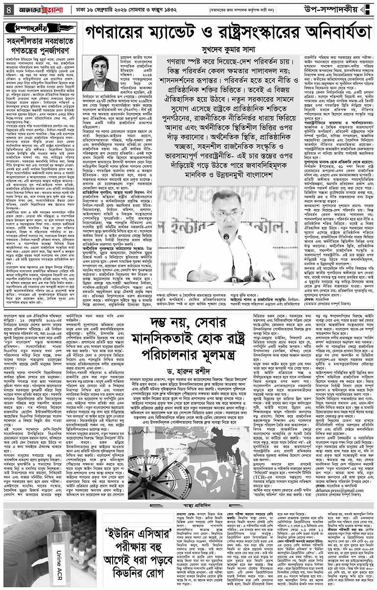 বর্ষ ৩৩ সংখ্যা ২৮৭ Page: 4 February 16, 2026 সোমবার ১৬ ফেব্রুয়ারি ২০২৬ ঢাকা ৩ ফাল্গুন ১৪৩২ বঙ্গাব্দ ২৭ শাবান ১৪৪৭ রেজি.নং-ডিএ-১৩৯৯ Page 1Page 2Page 3Page 4Page 5Page 6Page 7Page 8 Thumbnails × বর্ষ ৩৩ সংখ্যা ২৮৭ পৃষ্ঠা-১।-প্রথম-পাতাপৃষ্ঠা-২।-দেশের-খবরপৃষ্ঠা-৩।-বিদেশের-খবরপৃষ্ঠা-৪।-উপ-সম্পাদকীয়-পৃষ্ঠা-৫।-বিজ্ঞান-ও-প্রযুক্তিপৃষ্ঠা-৬।-খেলাধুলাপৃষ্ঠা-৭।-খবরপৃষ্ঠা-৮।-শেষের-পাতা << First << 3 4 >> Last >> Hide পৃষ্ঠা-১।-প্রথম-পাতাপৃষ্ঠা-২।-দেশের-খবরপৃষ্ঠা-৩।-বিদেশের-খবরপৃষ্ঠা-৪।-উপ-সম্পাদকীয়-পৃষ্ঠা-৫।-বিজ্ঞান-ও-প্রযুক্তিপৃষ্ঠা-৬।-খেলাধুলাপৃষ্ঠা-৭।-খবরপৃষ্ঠা-৮।-শেষের-পাতা পৃষ্ঠা-৪।-উপ-সম্পাদকীয়-