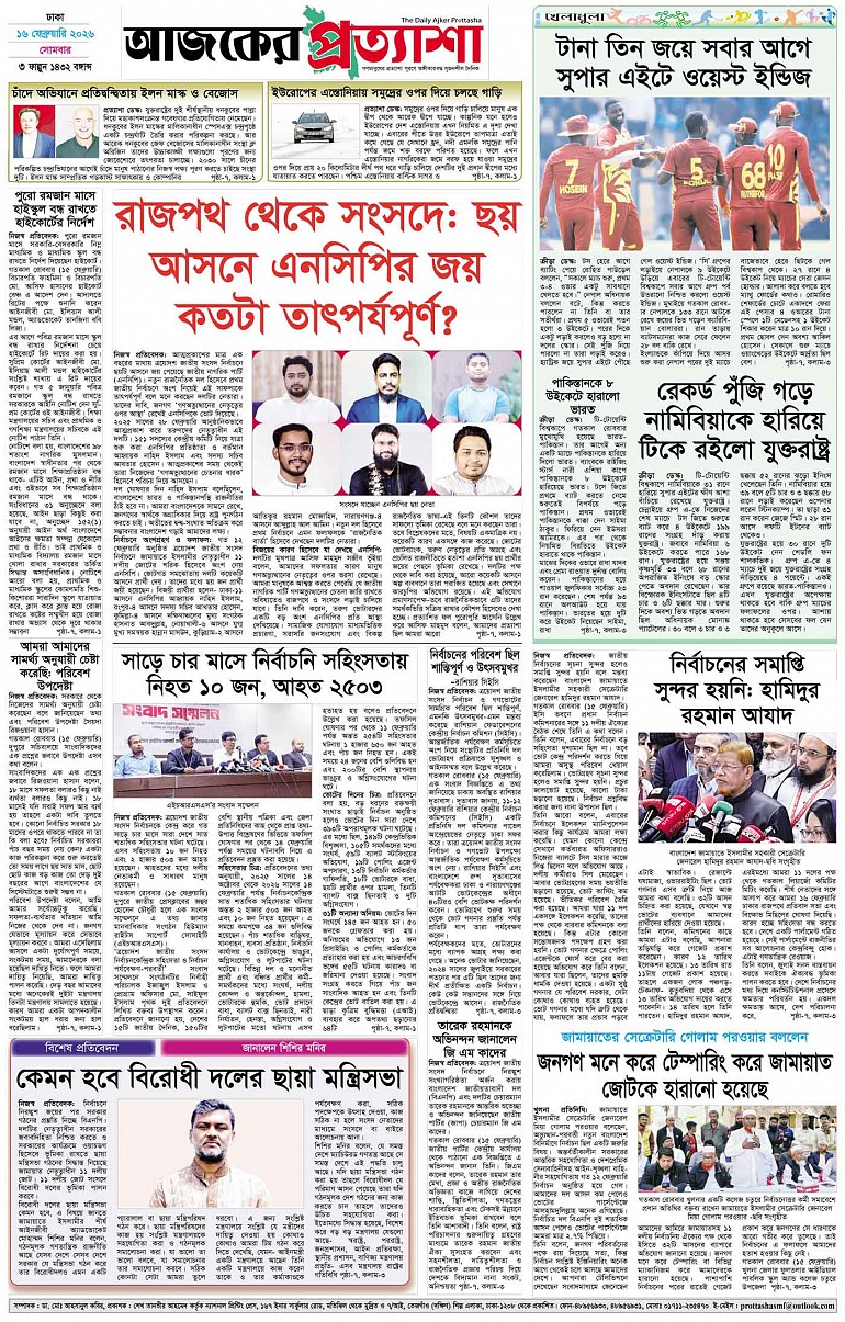 বর্ষ ৩৩ সংখ্যা ২৮৭ Page: 8 February 16, 2026 সোমবার ১৬ ফেব্রুয়ারি ২০২৬ ঢাকা ৩ ফাল্গুন ১৪৩২ বঙ্গাব্দ ২৭ শাবান ১৪৪৭ রেজি.নং-ডিএ-১৩৯৯ Page 1Page 2Page 3Page 4Page 5Page 6Page 7Page 8 Thumbnails × বর্ষ ৩৩ সংখ্যা ২৮৭ পৃষ্ঠা-১।-প্রথম-পাতাপৃষ্ঠা-২।-দেশের-খবরপৃষ্ঠা-৩।-বিদেশের-খবরপৃষ্ঠা-৪।-উপ-সম্পাদকীয়-পৃষ্ঠা-৫।-বিজ্ঞান-ও-প্রযুক্তিপৃষ্ঠা-৬।-খেলাধুলাপৃষ্ঠা-৭।-খবরপৃষ্ঠা-৮।-শেষের-পাতা << First << 7 8 >> Last >> Hide পৃষ্ঠা-১।-প্রথম-পাতাপৃষ্ঠা-২।-দেশের-খবরপৃষ্ঠা-৩।-বিদেশের-খবরপৃষ্ঠা-৪।-উপ-সম্পাদকীয়-পৃষ্ঠা-৫।-বিজ্ঞান-ও-প্রযুক্তিপৃষ্ঠা-৬।-খেলাধুলাপৃষ্ঠা-৭।-খবরপৃষ্ঠা-৮।-শেষের-পাতা পৃষ্ঠা-৮।-শেষের-পাতা