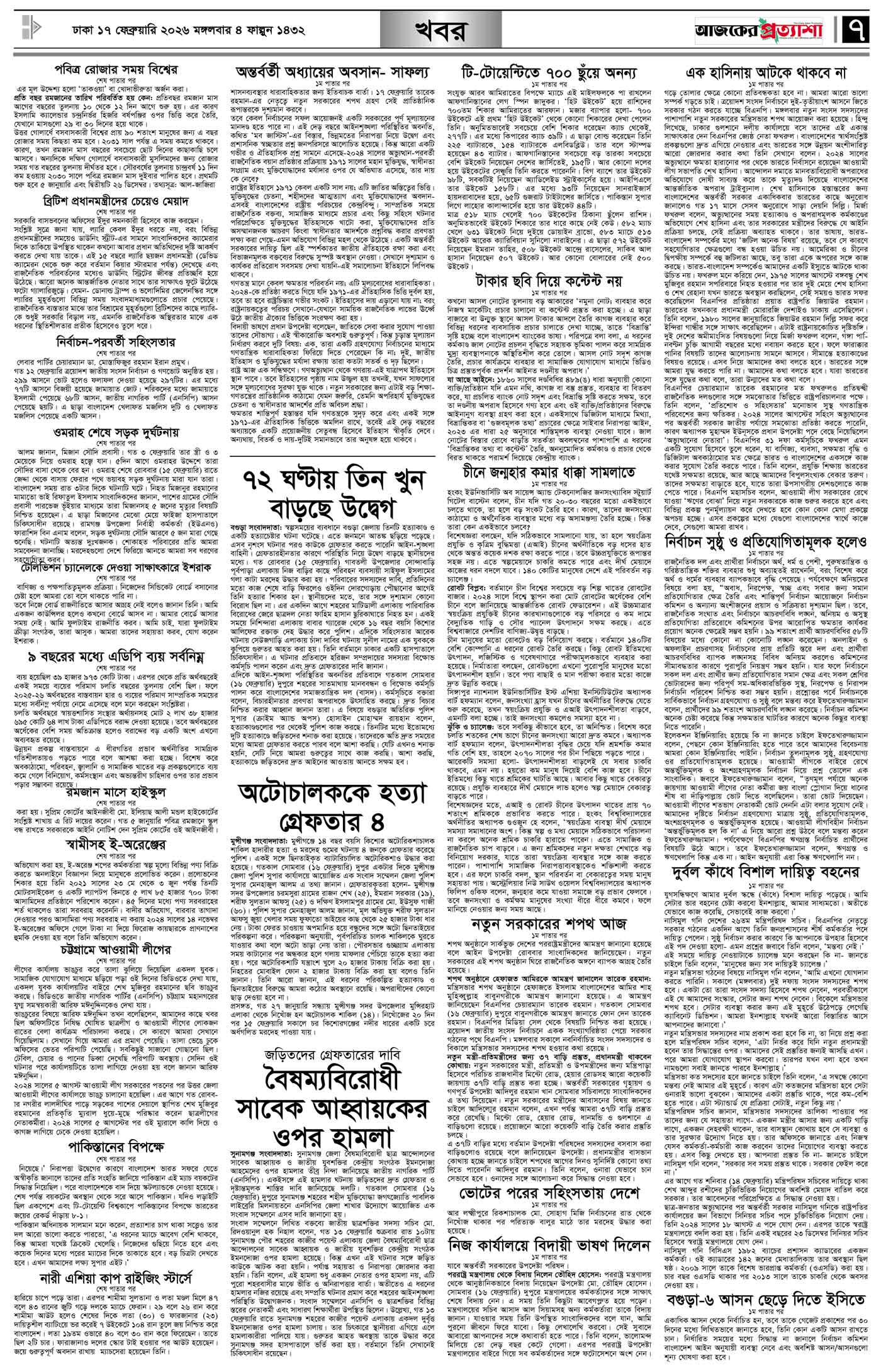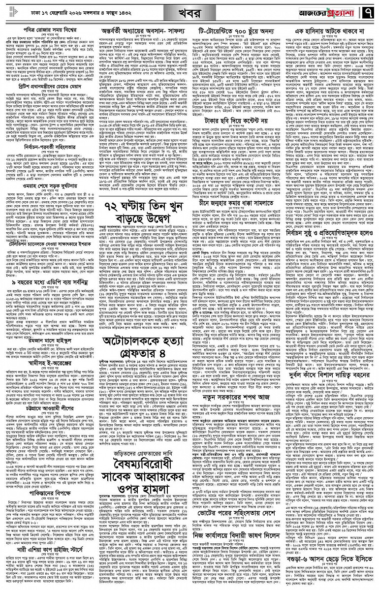 বর্ষ ৩৩ সংখ্যা ২৮৮ Page: 7 February 17, 2026 মঙ্গলবার ১৭ ফেব্রুয়ারি ২০২৬ ঢাকা ৪ ফাল্গুন ১৪৩২ বঙ্গাব্দ ২৮ শাবান ১৪৪৭ রেজি.নং-ডিএ-১৩৯৯ Page 1Page 2Page 3Page 4Page 5Page 6Page 7Page 8 Thumbnails × বর্ষ ৩৩ সংখ্যা ২৮৮ পৃষ্ঠা-১।-প্রথম-পাতাপৃষ্ঠা-২।-দেশের-খবরপৃষ্ঠা-৩।-বিদেশের-খবরপৃষ্ঠা-৪।-উপ-সম্পাদকীয়-পৃষ্ঠা-৫।-লাইফস্টাইলপৃষ্ঠা-৬।-খেলাধুলাপৃষ্ঠা-৭।-খবরপৃষ্ঠা-৮।-শেষের-পাতা << First << 6 7 >> Last >> Hide পৃষ্ঠা-১।-প্রথম-পাতাপৃষ্ঠা-২।-দেশের-খবরপৃষ্ঠা-৩।-বিদেশের-খবরপৃষ্ঠা-৪।-উপ-সম্পাদকীয়-পৃষ্ঠা-৫।-লাইফস্টাইলপৃষ্ঠা-৬।-খেলাধুলাপৃষ্ঠা-৭।-খবরপৃষ্ঠা-৮।-শেষের-পাতা পৃষ্ঠা-৭।-খবর
