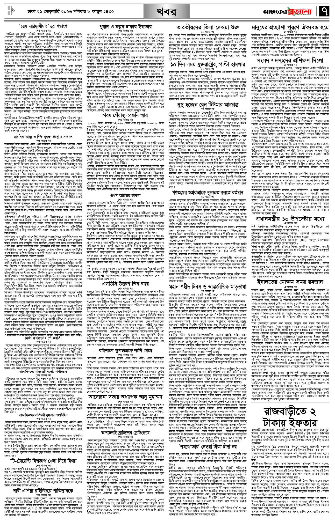 বর্ষ ৩৩ সংখ্যা ২৯২ Page: 7 February 21, 2026 শনিবার ২১ ফেব্রুয়ারি ২০২৬ ঢাকা ৮ ফাল্গুন ১৪৩২ বঙ্গাব্দ ৩ রমজান ১৪৪৭ রেজি.নং-ডিএ-১৩৯৯ Page 1Page 2Page 3Page 4Page 5Page 6Page 7Page 8 Thumbnails × বর্ষ ৩৩ সংখ্যা ২৯২ পৃষ্ঠা-১।-প্রথম-পাতাপৃষ্ঠা-২।-দেশের-খবরপৃষ্ঠা-৩।-বিদেশের-খবরপৃষ্ঠা-৪।-উপ-সম্পাদকীয়-পৃষ্ঠা-৫।-সাহিত্যপৃষ্ঠা-৬।-খেলাধুলাপৃষ্ঠা-৭।-খবরপৃষ্ঠা-৮।-শেষের-পাতা << First << 6 7 >> Last >> Hide পৃষ্ঠা-১।-প্রথম-পাতাপৃষ্ঠা-২।-দেশের-খবরপৃষ্ঠা-৩।-বিদেশের-খবরপৃষ্ঠা-৪।-উপ-সম্পাদকীয়-পৃষ্ঠা-৫।-সাহিত্যপৃষ্ঠা-৬।-খেলাধুলাপৃষ্ঠা-৭।-খবরপৃষ্ঠা-৮।-শেষের-পাতা পৃষ্ঠা-৭।-খবর