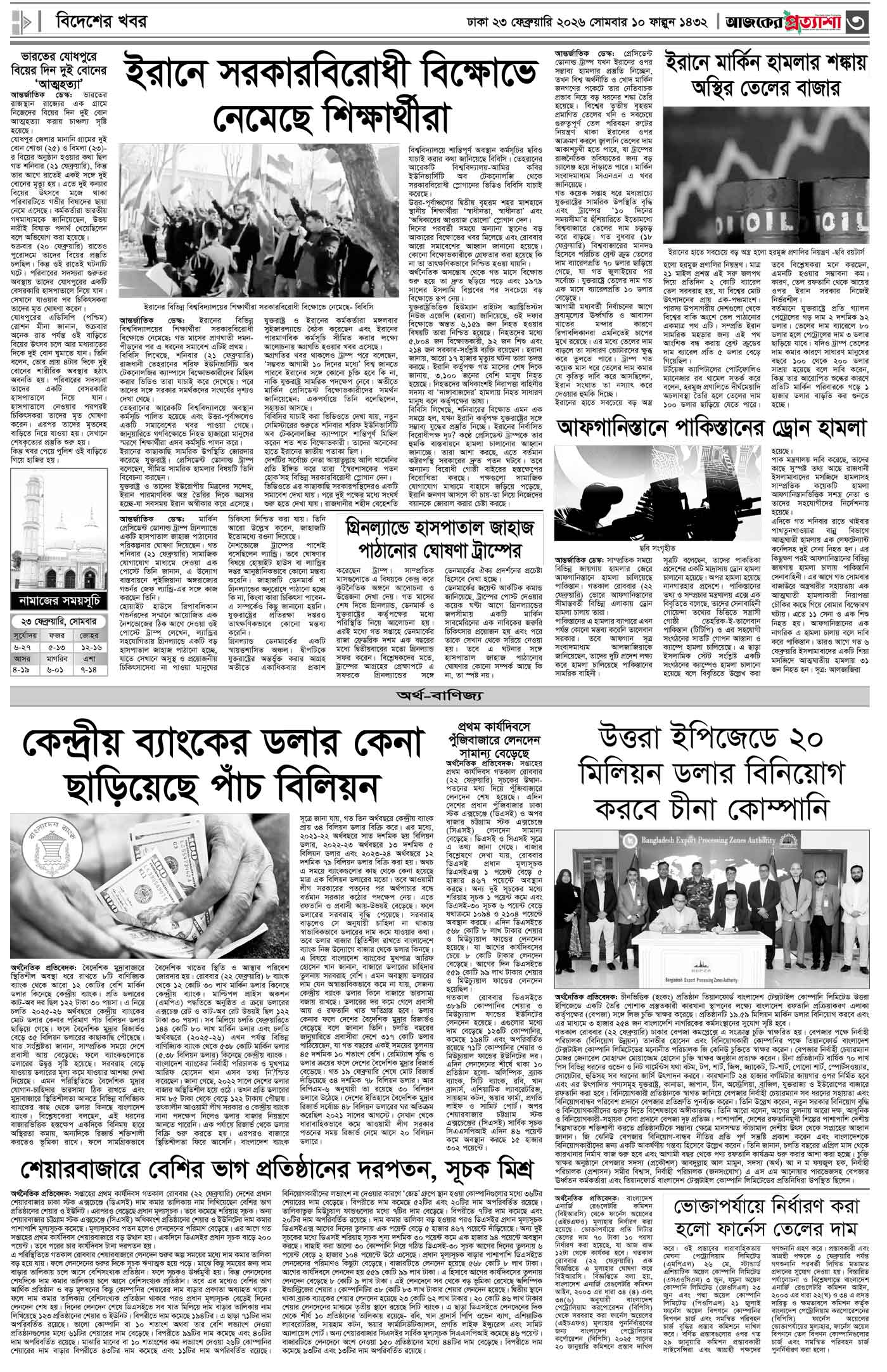 বর্ষ ৩৩ সংখ্যা ২৯৩ Page: 3 February 23, 2026 সোমবার ২৩ ফেব্রুয়ারি ২০২৬ ঢাকা ১০ ফাল্গুন ১৪৩২ বঙ্গাব্দ ৫ রমজান ১৪৪৭ রেজি.নং-ডিএ-১৩৯৯ Page 1Page 2Page 3Page 4Page 5Page 6Page 7Page 8 Thumbnails × বর্ষ ৩৩ সংখ্যা ২৯৩ পৃষ্ঠা-১।-প্রথম-পাতাপৃষ্ঠা-২।-দেশের-খবরপৃষ্ঠা-৩।-বিদেশের-খবরপৃষ্ঠা-৪।-উপ-সম্পাদকীয়-পৃষ্ঠা-৫।-কৃষি-ও-কৃষকপৃষ্ঠা-৬।-খেলাধুলাপৃষ্ঠা-৭।-খবরপৃষ্ঠা-৮।-শেষের-পাতা << First << 2 3 >> Last >> Hide পৃষ্ঠা-১।-প্রথম-পাতাপৃষ্ঠা-২।-দেশের-খবরপৃষ্ঠা-৩।-বিদেশের-খবরপৃষ্ঠা-৪।-উপ-সম্পাদকীয়-পৃষ্ঠা-৫।-কৃষি-ও-কৃষকপৃষ্ঠা-৬।-খেলাধুলাপৃষ্ঠা-৭।-খবরপৃষ্ঠা-৮।-শেষের-পাতা পৃষ্ঠা-৩।-বিদেশের-খবর