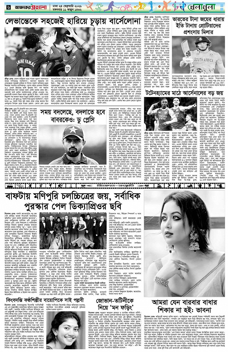 বর্ষ ৩৩ সংখ্যা ২৯৪ Page: 6 February 24, 2026 মঙ্গলবার ২৪ ফেব্রুয়ারি ২০২৬ ঢাকা ১১ ফাল্গুন ১৪৩২ বঙ্গাব্দ ৬ রমজান ১৪৪৭ রেজি.নং-ডিএ-১৩৯৯ Page 1Page 2Page 3Page 4Page 5Page 6Page 7Page 8 Thumbnails × বর্ষ ৩৩ সংখ্যা ২৯৪ পৃষ্ঠা-১।-প্রথম-পাতাপৃষ্ঠা-২।-দেশের-খবরপৃষ্ঠা-৩।-বিদেশের-খবরপৃষ্ঠা-৪।-উপ-সম্পাদকীয়-পৃষ্ঠা-৫।-লাইফস্টাইলপৃষ্ঠা-৬।-খেলাধুলাপৃষ্ঠা-৭।-খবরপৃষ্ঠা-৮।-শেষের-পাতা << First << 5 6 >> Last >> Hide পৃষ্ঠা-১।-প্রথম-পাতাপৃষ্ঠা-২।-দেশের-খবরপৃষ্ঠা-৩।-বিদেশের-খবরপৃষ্ঠা-৪।-উপ-সম্পাদকীয়-পৃষ্ঠা-৫।-লাইফস্টাইলপৃষ্ঠা-৬।-খেলাধুলাপৃষ্ঠা-৭।-খবরপৃষ্ঠা-৮।-শেষের-পাতা পৃষ্ঠা-৬।-খেলাধুলা