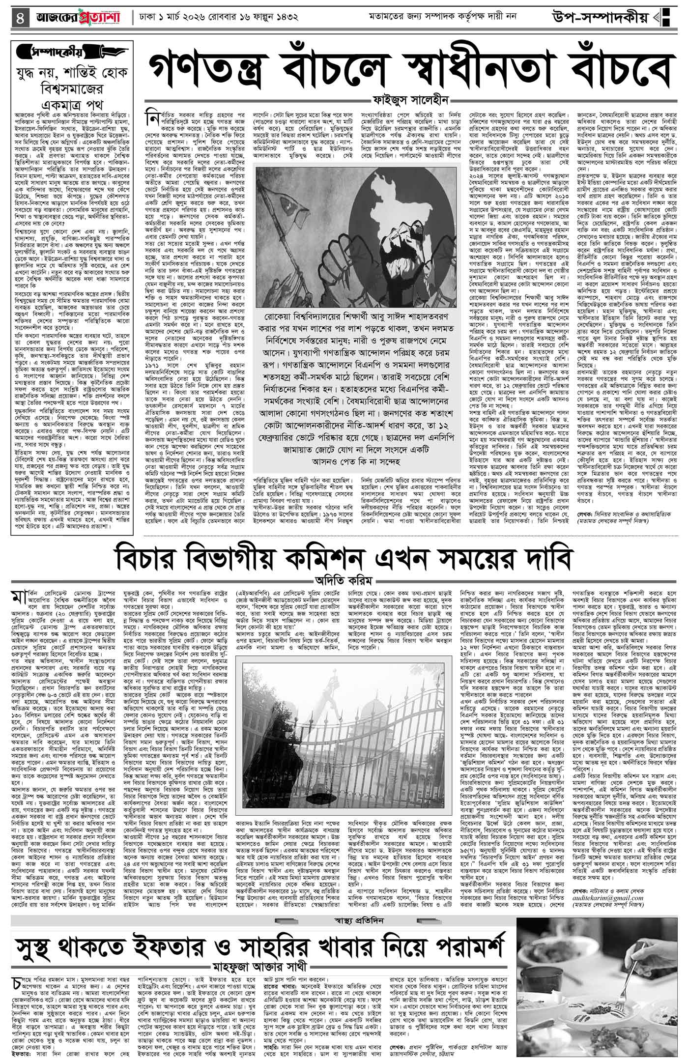 বর্ষ ৩৩ সংখ্যা ২৯৯ Page: 4 March 01, 2026 রবিবার ১ মার্চ ২০২৬ ঢাকা ১৬ ফাল্গুন ১৪৩২ বঙ্গাব্দ ১১ রমজান ১৪৪৭ রেজি.নং-ডিএ-১৩৯৯ Page 1Page 2Page 3Page 4Page 5Page 6Page 7Page 8 Thumbnails × বর্ষ ৩৩ সংখ্যা ২৯৯ পৃষ্ঠা-১।-প্রথম-পাতাপৃষ্ঠা-২।-দেশের-খবরপৃষ্ঠা-৩।-বিদেশের-খবরপৃষ্ঠা-৪।-উপ-সম্পাদকীয়-পৃষ্ঠা-৫।-বাণিজ্যপৃষ্ঠা-৬।-খেলাধুলাপৃষ্ঠা-৭।-খবরপৃষ্ঠা-৮।-শেষের-পাতা << First << 3 4 >> Last >> Hide পৃষ্ঠা-১।-প্রথম-পাতাপৃষ্ঠা-২।-দেশের-খবরপৃষ্ঠা-৩।-বিদেশের-খবরপৃষ্ঠা-৪।-উপ-সম্পাদকীয়-পৃষ্ঠা-৫।-বাণিজ্যপৃষ্ঠা-৬।-খেলাধুলাপৃষ্ঠা-৭।-খবরপৃষ্ঠা-৮।-শেষের-পাতা পৃষ্ঠা-৪।-উপ-সম্পাদকীয়-