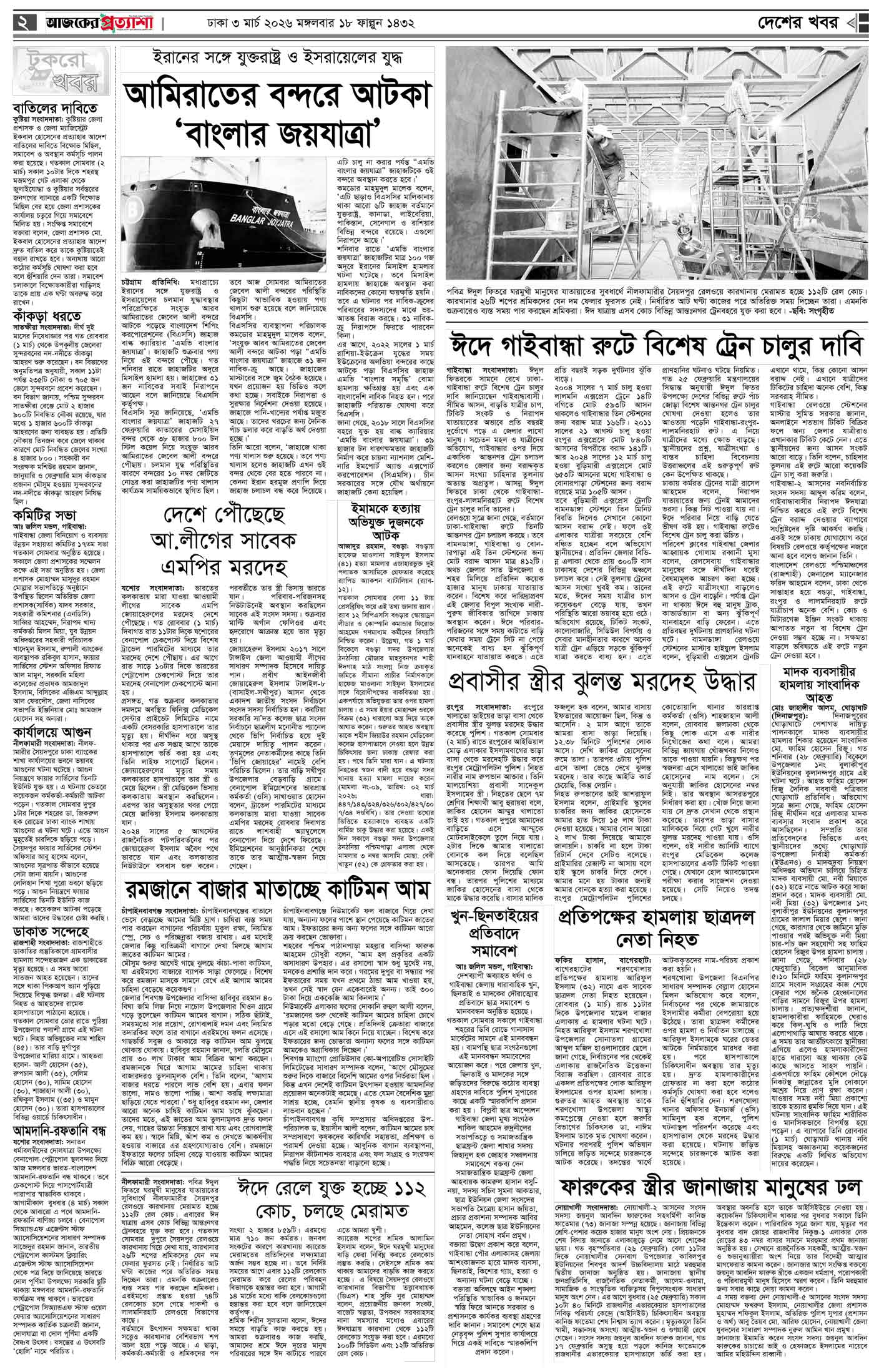 বর্ষ ৩৩ সংখ্যা ৩০১ Page: 2 March 03, 2026 মঙ্গলবার ৩ মার্চ ২০২৬ ঢাকা ১৮ ফাল্গুন ১৪৩২ বঙ্গাব্দ ১৩ রমজান ১৪৪৭ রেজি.নং-ডিএ-১৩৯৯ Page 1Page 2Page 3Page 4Page 5Page 6Page 7Page 8 Thumbnails × বর্ষ ৩৩ সংখ্যা ৩০১ পৃষ্ঠা-১।-প্রথম-পাতাপৃষ্ঠা-২।-দেশের-খবরপৃষ্ঠা-৩।-বিদেশের-খবরপৃষ্ঠা-৪।-উপ-সম্পাদকীয়-পৃষ্ঠা-৫।-লাইফস্টাইলপৃষ্ঠা-৬।-খেলাধুলাপৃষ্ঠা-৭।-খবরপৃষ্ঠা-৮।-শেষের-পাতা << First << 1 2 >> Last >> Hide পৃষ্ঠা-১।-প্রথম-পাতাপৃষ্ঠা-২।-দেশের-খবরপৃষ্ঠা-৩।-বিদেশের-খবরপৃষ্ঠা-৪।-উপ-সম্পাদকীয়-পৃষ্ঠা-৫।-লাইফস্টাইলপৃষ্ঠা-৬।-খেলাধুলাপৃষ্ঠা-৭।-খবরপৃষ্ঠা-৮।-শেষের-পাতা পৃষ্ঠা-২।-দেশের-খবর