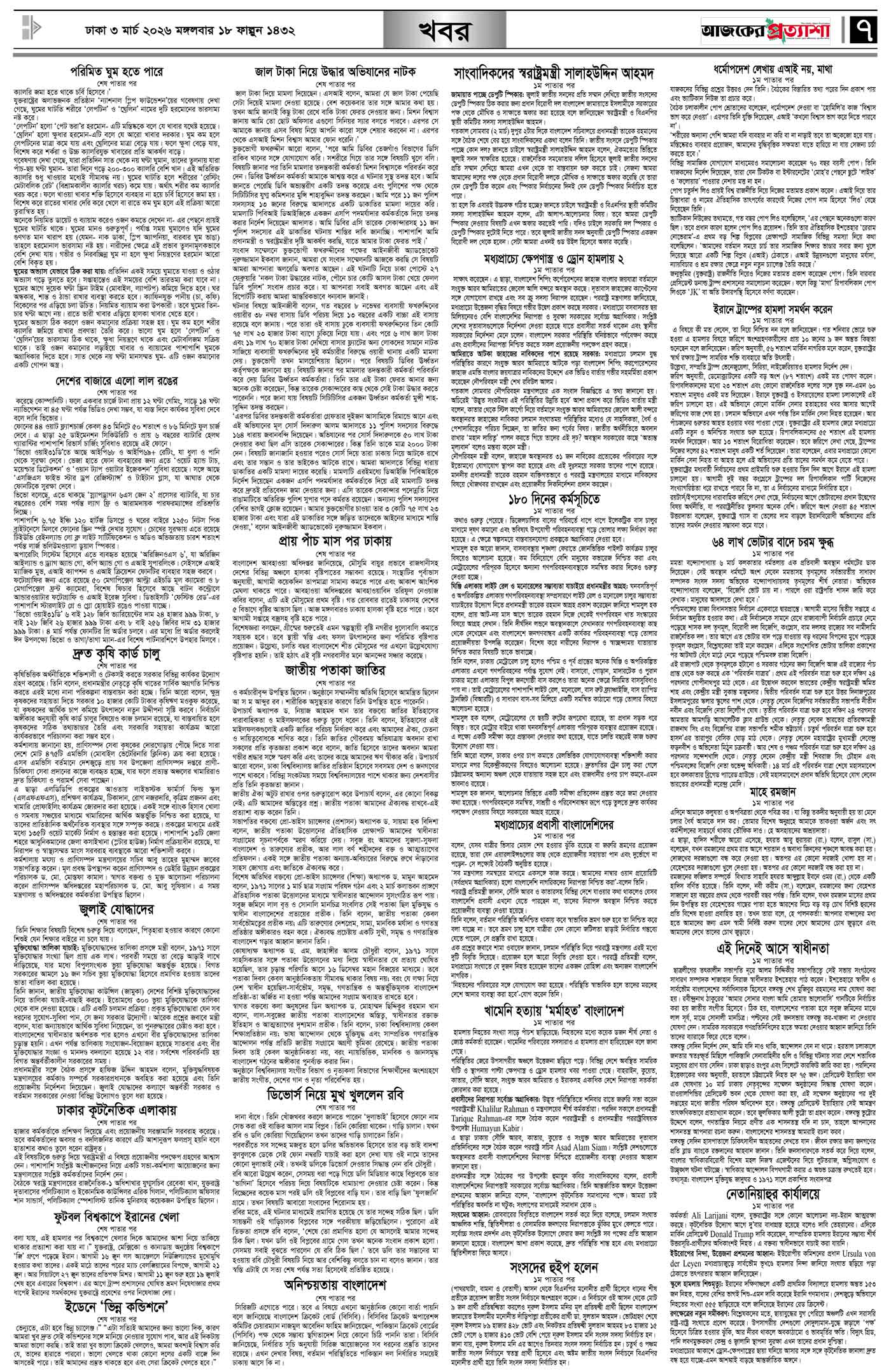 বর্ষ ৩৩ সংখ্যা ৩০১ Page: 7 March 03, 2026 মঙ্গলবার ৩ মার্চ ২০২৬ ঢাকা ১৮ ফাল্গুন ১৪৩২ বঙ্গাব্দ ১৩ রমজান ১৪৪৭ রেজি.নং-ডিএ-১৩৯৯ Page 1Page 2Page 3Page 4Page 5Page 6Page 7Page 8 Thumbnails × বর্ষ ৩৩ সংখ্যা ৩০১ পৃষ্ঠা-১।-প্রথম-পাতাপৃষ্ঠা-২।-দেশের-খবরপৃষ্ঠা-৩।-বিদেশের-খবরপৃষ্ঠা-৪।-উপ-সম্পাদকীয়-পৃষ্ঠা-৫।-লাইফস্টাইলপৃষ্ঠা-৬।-খেলাধুলাপৃষ্ঠা-৭।-খবরপৃষ্ঠা-৮।-শেষের-পাতা << First << 6 7 >> Last >> Hide পৃষ্ঠা-১।-প্রথম-পাতাপৃষ্ঠা-২।-দেশের-খবরপৃষ্ঠা-৩।-বিদেশের-খবরপৃষ্ঠা-৪।-উপ-সম্পাদকীয়-পৃষ্ঠা-৫।-লাইফস্টাইলপৃষ্ঠা-৬।-খেলাধুলাপৃষ্ঠা-৭।-খবরপৃষ্ঠা-৮।-শেষের-পাতা পৃষ্ঠা-৭।-খবর