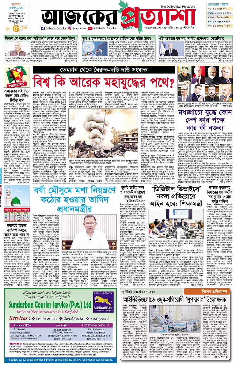 বর্ষ ৩৩ সংখ্যা ৩০২ March 04, 2026 বুধবার ৪ মার্চ ২০২৬ ঢাকা ১৯ ফাল্গুন ১৪৩২ বঙ্গাব্দ ১৪ রমজান ১৪৪৭ রেজি.নং-ডিএ-১৩৯৯ Page 1Page 2Page 3Page 4Page 5Page 6Page 7Page 8 Thumbnails × বর্ষ ৩৩ সংখ্যা ৩০২ পৃষ্ঠা-১।-প্রথম-পাতাপৃষ্ঠা-২।-দেশের-খবরপৃষ্ঠা-৩।-বিদেশের-খবরপৃষ্ঠা-৪।-উপ-সম্পাদকীয়-পৃষ্ঠা-৫।-স্বাস্থ-ও-পরিচর্যাপৃষ্ঠা-৬।-খেলাধুলাপৃষ্ঠা-৭।-খবরপৃষ্ঠা-৮।-শেষের-পাতা << First << 1 2 >> Last >> Hide পৃষ্ঠা-১।-প্রথম-পাতাপৃষ্ঠা-২।-দেশের-খবরপৃষ্ঠা-৩।-বিদেশের-খবরপৃষ্ঠা-৪।-উপ-সম্পাদকীয়-পৃষ্ঠা-৫।-স্বাস্থ-ও-পরিচর্যাপৃষ্ঠা-৬।-খেলাধুলাপৃষ্ঠা-৭।-খবরপৃষ্ঠা-৮।-শেষের-পাতা পৃষ্ঠা-১।-প্রথম-পাতা