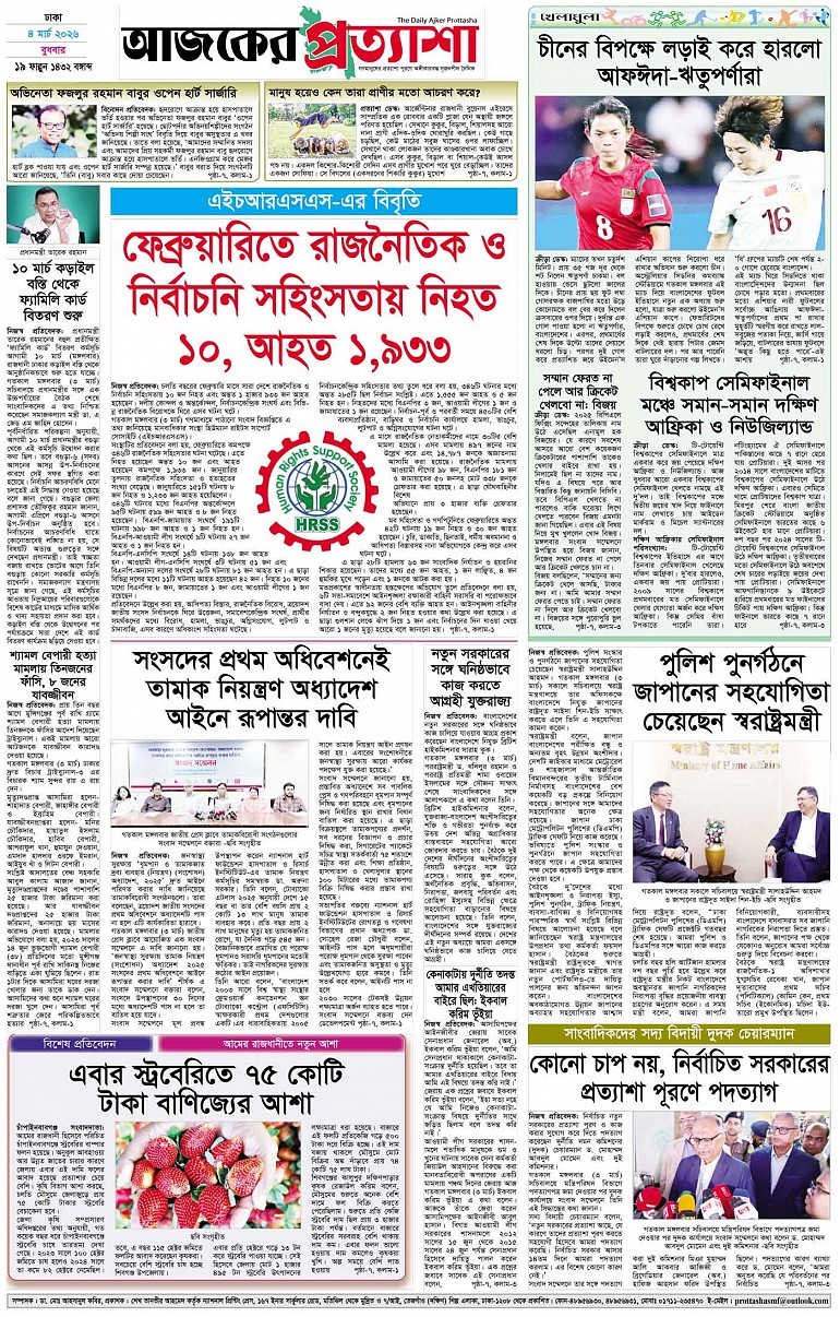 বর্ষ ৩৩ সংখ্যা ৩০২ Page: 8 March 04, 2026 বুধবার ৪ মার্চ ২০২৬ ঢাকা ১৯ ফাল্গুন ১৪৩২ বঙ্গাব্দ ১৪ রমজান ১৪৪৭ রেজি.নং-ডিএ-১৩৯৯ Page 1Page 2Page 3Page 4Page 5Page 6Page 7Page 8 Thumbnails × বর্ষ ৩৩ সংখ্যা ৩০২ পৃষ্ঠা-১।-প্রথম-পাতাপৃষ্ঠা-২।-দেশের-খবরপৃষ্ঠা-৩।-বিদেশের-খবরপৃষ্ঠা-৪।-উপ-সম্পাদকীয়-পৃষ্ঠা-৫।-স্বাস্থ-ও-পরিচর্যাপৃষ্ঠা-৬।-খেলাধুলাপৃষ্ঠা-৭।-খবরপৃষ্ঠা-৮।-শেষের-পাতা << First << 7 8 >> Last >> Hide পৃষ্ঠা-১।-প্রথম-পাতাপৃষ্ঠা-২।-দেশের-খবরপৃষ্ঠা-৩।-বিদেশের-খবরপৃষ্ঠা-৪।-উপ-সম্পাদকীয়-পৃষ্ঠা-৫।-স্বাস্থ-ও-পরিচর্যাপৃষ্ঠা-৬।-খেলাধুলাপৃষ্ঠা-৭।-খবরপৃষ্ঠা-৮।-শেষের-পাতা পৃষ্ঠা-৮।-শেষের-পাতা