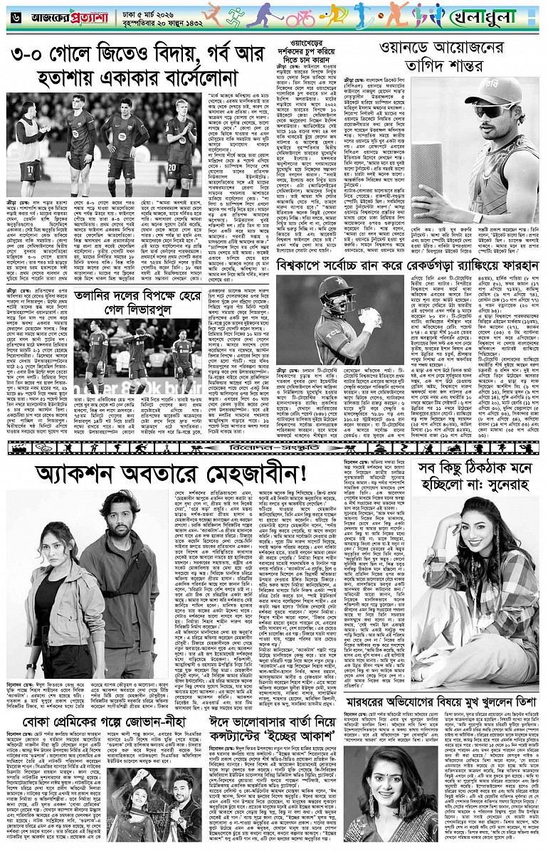 বর্ষ ৩৩ সংখ্যা ৩০৩ Page: 6 March 05, 2026 বৃহস্পতিবার ৫ মার্চ ২০২৬ ঢাকা ২০ ফাল্গুন ১৪৩২ বঙ্গাব্দ ১৫ রমজান ১৪৪৭ রেজি.নং-ডিএ-১৩৯৯ Page 1Page 2Page 3Page 4Page 5Page 6Page 7Page 8 Thumbnails × বর্ষ ৩৩ সংখ্যা ৩০৩ পৃষ্ঠা-১।-প্রথম-পাতাপৃষ্ঠা-২।-দেশের-খবরপৃষ্ঠা-৩।-বিদেশের-খবরপৃষ্ঠা-৪।-উপ-সম্পাদকীয়-পৃষ্ঠা-৫।-নারী-ও-শিশুপৃষ্ঠা-৬।-খেলাধুলাপৃষ্ঠা-৭।-খবরপৃষ্ঠা-৮।-শেষের-পাতা << First << 5 6 >> Last >> Hide পৃষ্ঠা-১।-প্রথম-পাতাপৃষ্ঠা-২।-দেশের-খবরপৃষ্ঠা-৩।-বিদেশের-খবরপৃষ্ঠা-৪।-উপ-সম্পাদকীয়-পৃষ্ঠা-৫।-নারী-ও-শিশুপৃষ্ঠা-৬।-খেলাধুলাপৃষ্ঠা-৭।-খবরপৃষ্ঠা-৮।-শেষের-পাতা পৃষ্ঠা-৬।-খেলাধুলা