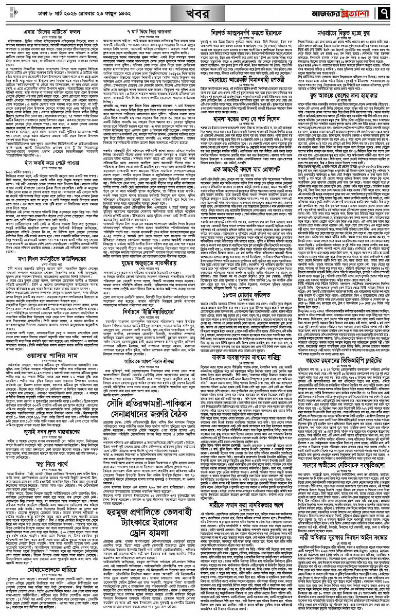 বর্ষ ৩৩ সংখ্যা ৩০৬ Page: 7 March 08, 2026 রোববার ৮ মার্চ ২০২৬ ঢাকা ২৩ ফাল্গুন ১৪৩২ বঙ্গাব্দ ১৮ রমজান ১৪৪৭ রেজি.নং-ডিএ-১৩৯৯ Page 1Page 2Page 3Page 4Page 5Page 6Page 7Page 8 Thumbnails × বর্ষ ৩৩ সংখ্যা ৩০৬ পৃষ্ঠা-১।-প্রথম-পাতাপৃষ্ঠা-২।-দেশের-খবরপৃষ্ঠা-৩।-বিদেশের-খবরপৃষ্ঠা-৪।-উপ-সম্পাদকীয়-পৃষ্ঠা-৫।-বাণিজ্যপৃষ্ঠা-৬।-খেলাধুলাপৃষ্ঠা-৭।-খবরপৃষ্ঠা-৮।-শেষের-পাতা << First << 6 7 >> Last >> Hide পৃষ্ঠা-১।-প্রথম-পাতাপৃষ্ঠা-২।-দেশের-খবরপৃষ্ঠা-৩।-বিদেশের-খবরপৃষ্ঠা-৪।-উপ-সম্পাদকীয়-পৃষ্ঠা-৫।-বাণিজ্যপৃষ্ঠা-৬।-খেলাধুলাপৃষ্ঠা-৭।-খবরপৃষ্ঠা-৮।-শেষের-পাতা পৃষ্ঠা-৭।-খবর