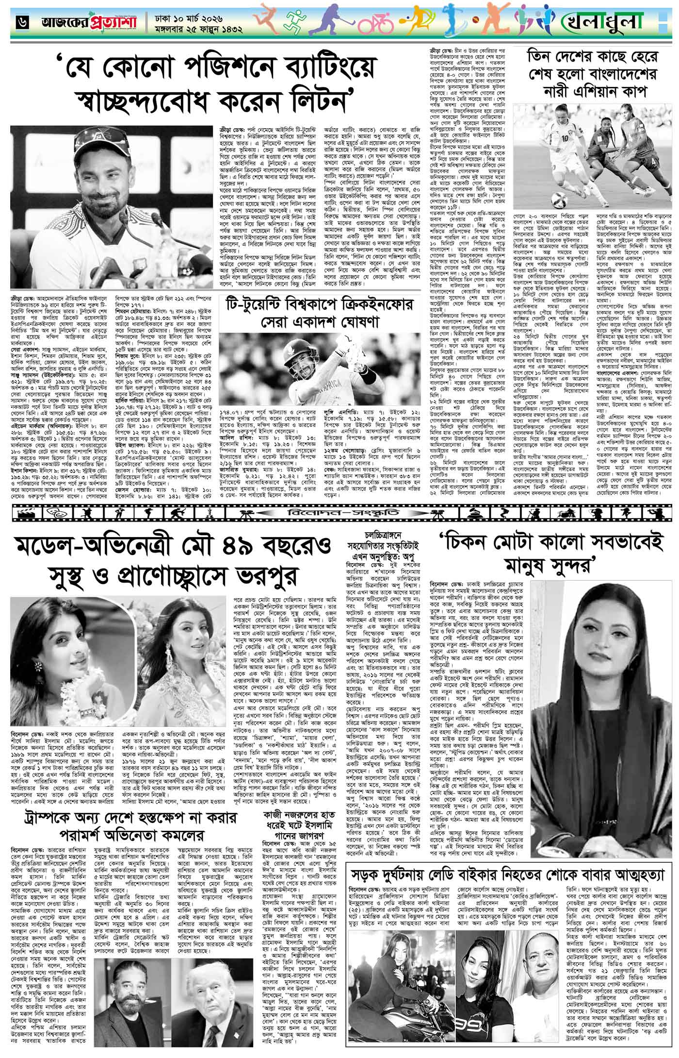 বর্ষ ৩৩ সংখ্যা ৩০৮ Page: 6 March 10, 2026 মঙ্গলবার ১০ মার্চ ২০২৬ ঢাকা ২৫ ফাল্গুন ১৪৩২ বঙ্গাব্দ ২০ রমজান ১৪৪৭ রেজি.নং-ডিএ-১৩৯৯ Page 1Page 2Page 3Page 4Page 5Page 6Page 7Page 8 Thumbnails × বর্ষ ৩৩ সংখ্যা ৩০৮ পৃষ্ঠা-১।-প্রথম-পাতাপৃষ্ঠা-২।-দেশের-খবরপৃষ্ঠা-৩।-বিদেশের-খবরপৃষ্ঠা-৪।-উপ-সম্পাদকীয়-পৃষ্ঠা-৫।-লাইফস্টাইলপৃষ্ঠা-৬।-খেলাধুলাপৃষ্ঠা-৭।-খবরপৃষ্ঠা-৮।-শেষের-পাতা << First << 5 6 >> Last >> Hide পৃষ্ঠা-১।-প্রথম-পাতাপৃষ্ঠা-২।-দেশের-খবরপৃষ্ঠা-৩।-বিদেশের-খবরপৃষ্ঠা-৪।-উপ-সম্পাদকীয়-পৃষ্ঠা-৫।-লাইফস্টাইলপৃষ্ঠা-৬।-খেলাধুলাপৃষ্ঠা-৭।-খবরপৃষ্ঠা-৮।-শেষের-পাতা পৃষ্ঠা-৬।-খেলাধুলা