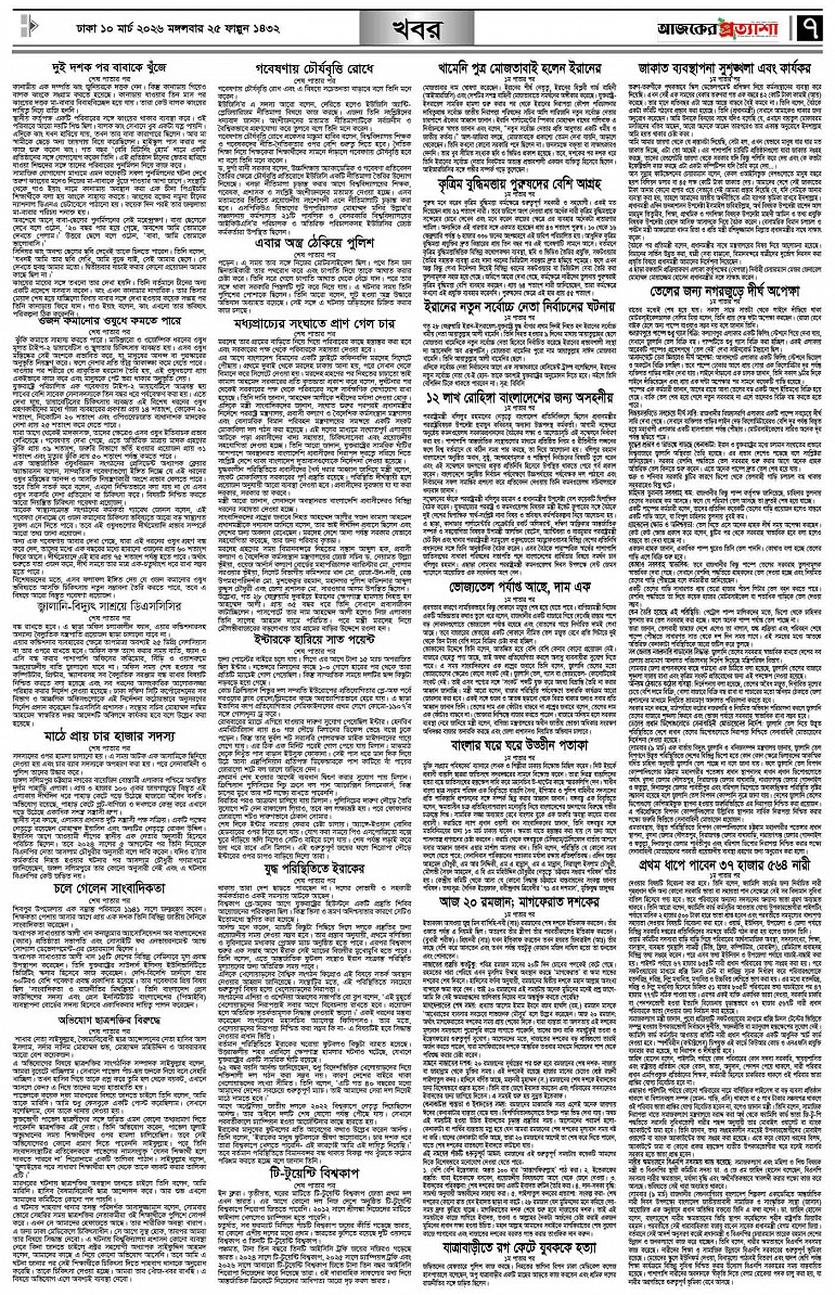 বর্ষ ৩৩ সংখ্যা ৩০৮ Page: 7 March 10, 2026 মঙ্গলবার ১০ মার্চ ২০২৬ ঢাকা ২৫ ফাল্গুন ১৪৩২ বঙ্গাব্দ ২০ রমজান ১৪৪৭ রেজি.নং-ডিএ-১৩৯৯ Page 1Page 2Page 3Page 4Page 5Page 6Page 7Page 8 Thumbnails × বর্ষ ৩৩ সংখ্যা ৩০৮ পৃষ্ঠা-১।-প্রথম-পাতাপৃষ্ঠা-২।-দেশের-খবরপৃষ্ঠা-৩।-বিদেশের-খবরপৃষ্ঠা-৪।-উপ-সম্পাদকীয়-পৃষ্ঠা-৫।-লাইফস্টাইলপৃষ্ঠা-৬।-খেলাধুলাপৃষ্ঠা-৭।-খবরপৃষ্ঠা-৮।-শেষের-পাতা << First << 6 7 >> Last >> Hide পৃষ্ঠা-১।-প্রথম-পাতাপৃষ্ঠা-২।-দেশের-খবরপৃষ্ঠা-৩।-বিদেশের-খবরপৃষ্ঠা-৪।-উপ-সম্পাদকীয়-পৃষ্ঠা-৫।-লাইফস্টাইলপৃষ্ঠা-৬।-খেলাধুলাপৃষ্ঠা-৭।-খবরপৃষ্ঠা-৮।-শেষের-পাতা পৃষ্ঠা-৭।-খবর