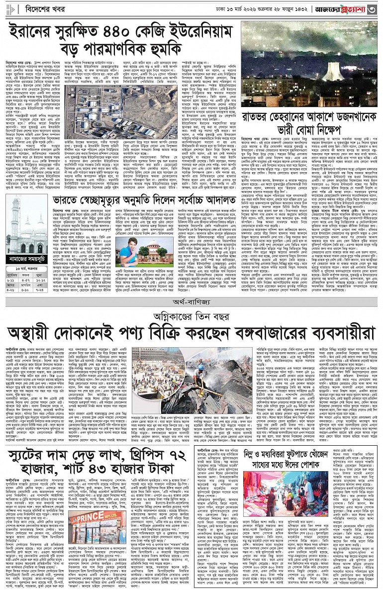 বর্ষ ৩৩ সংখ্যা ৩১১ Page: 2 March 13, 2026 শুক্রবার ১৩ মার্চ ২০২৬ ঢাকা ২৮ ফাল্গুন ১৪৩২ বঙ্গাব্দ ২৩ রমজান ১৪৪৭ রেজি.নং-ডিএ-১৩৯৯ Page 1Page 2Page 3Page 4 Thumbnails × বর্ষ ৩৩ সংখ্যা ৩১১ পৃষ্ঠা-২।-দেশের-খবরপৃষ্ঠা-৩।-বিদেশের-খবরপৃষ্ঠা-৪।-উপ-সম্পাদকীয়-পৃষ্ঠা-৬।-খেলাধুলা << First << 1 2 >> Last >> Hide পৃষ্ঠা-২।-দেশের-খবরপৃষ্ঠা-৩।-বিদেশের-খবরপৃষ্ঠা-৪।-উপ-সম্পাদকীয়-পৃষ্ঠা-৬।-খেলাধুলা পৃষ্ঠা-৩।-বিদেশের-খবর