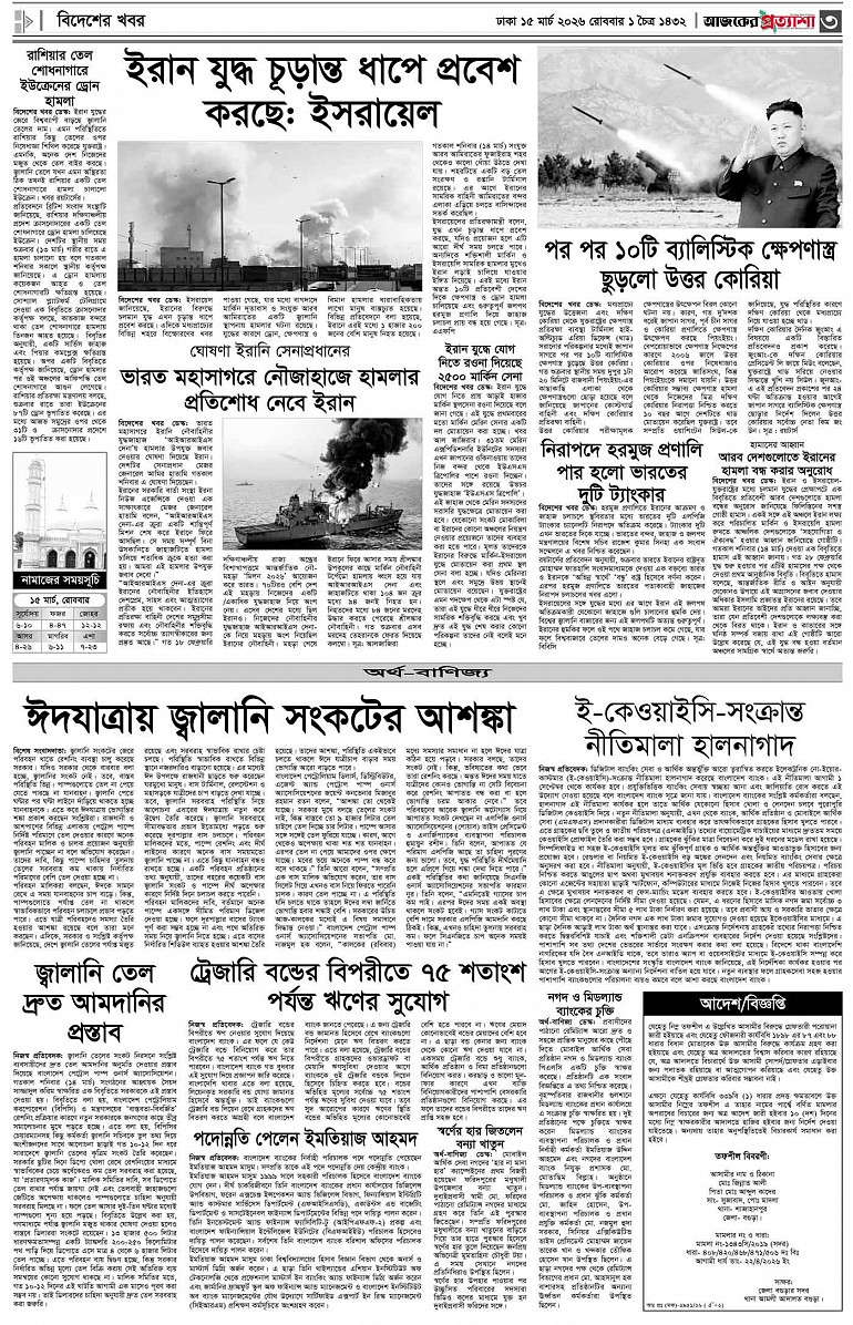 বর্ষ ৩৩ সংখ্যা ৩১৩ Page: 3 March 15, 2026 রোববার ১৫ মার্চ ২০২৬ ঢাকা ১ চৈত্র ১৪৩২ বঙ্গাব্দ ২৫ রমজান ১৪৪৭ রেজি.নং-ডিএ-১৩৯৯ Page 1Page 2Page 3Page 4Page 5Page 6Page 7Page 8 Thumbnails × বর্ষ ৩৩ সংখ্যা ৩১৩ পৃষ্ঠা-১।-প্রথম-পাতাপৃষ্ঠা-২।-দেশের-খবরপৃষ্ঠা-৩।-বিদেশের-খবরপৃষ্ঠা-৪।-উপ-সম্পাদকীয়-পৃষ্ঠা-৫।-বাণিজ্যপৃষ্ঠা-৬।-খেলাধুলাপৃষ্ঠা-৭।-খবরপৃষ্ঠা-৮।-শেষের-পাতা << First << 2 3 >> Last >> Hide পৃষ্ঠা-১।-প্রথম-পাতাপৃষ্ঠা-২।-দেশের-খবরপৃষ্ঠা-৩।-বিদেশের-খবরপৃষ্ঠা-৪।-উপ-সম্পাদকীয়-পৃষ্ঠা-৫।-বাণিজ্যপৃষ্ঠা-৬।-খেলাধুলাপৃষ্ঠা-৭।-খবরপৃষ্ঠা-৮।-শেষের-পাতা পৃষ্ঠা-৩।-বিদেশের-খবর