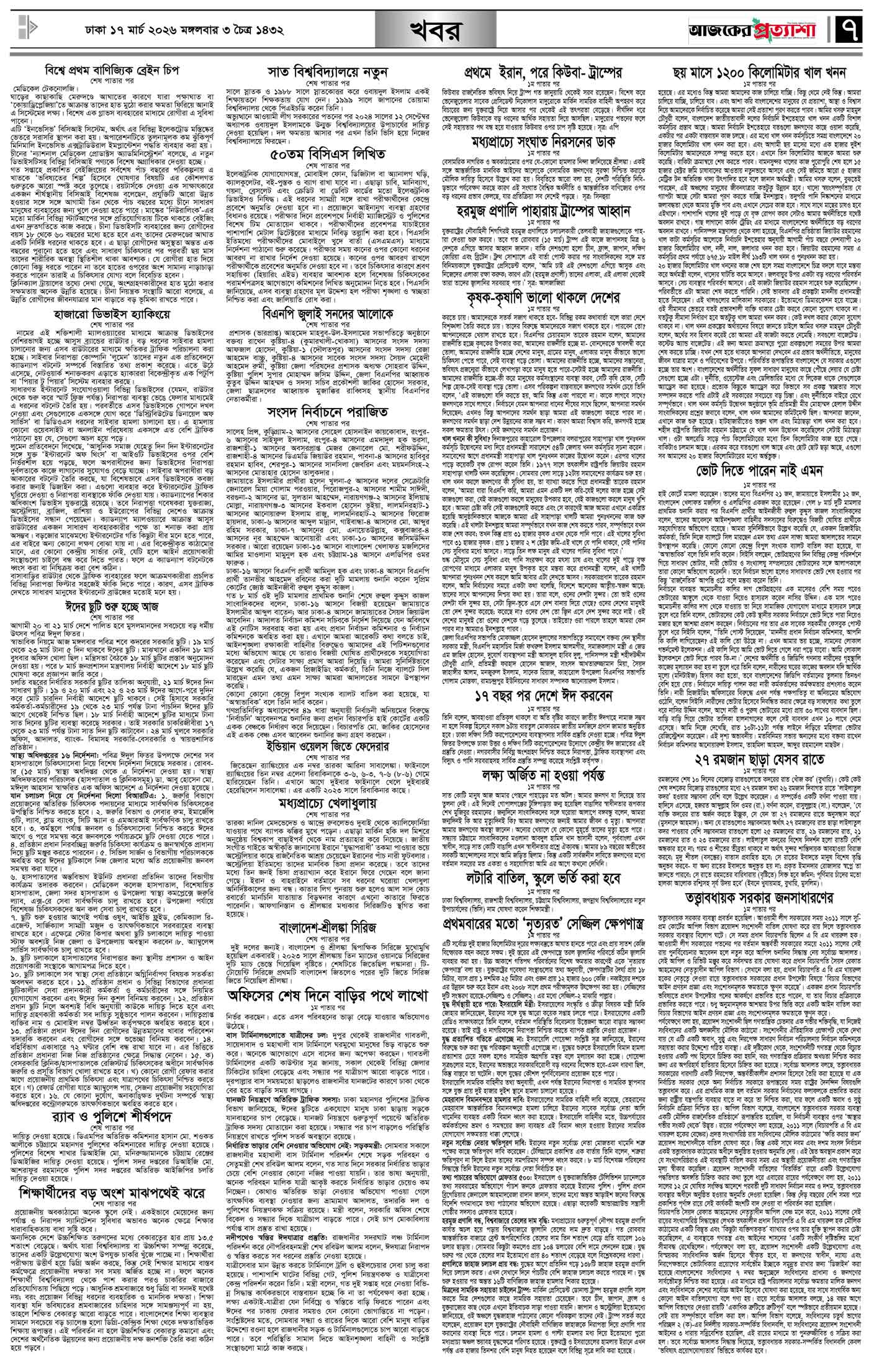 বর্ষ ৩৩ সংখ্যা ৩১৫ Page: 7 March 17, 2026 মঙ্গলবার ১৭ মার্চ ২০২৬ ঢাকা ৩ চৈত্র ১৪৩২ বঙ্গাব্দ ২৭ রমজান ১৪৪৭ রেজি.নং-ডিএ-১৩৯৯ Page 1Page 2Page 3Page 4Page 5Page 6Page 7Page 8 Thumbnails × বর্ষ ৩৩ সংখ্যা ৩১৫ পৃষ্ঠা-১।-প্রথম-পাতাপৃষ্ঠা-২।-দেশের-খবরপৃষ্ঠা-৩।-বিদেশের-খবরপৃষ্ঠা-৪।-উপ-সম্পাদকীয়-পৃষ্ঠা-৫।-লাইফস্টাইলপৃষ্ঠা-৬।-খেলাধুলাপৃষ্ঠা-৭।-খবরপৃষ্ঠা-৮।-শেষের-পাতা << First << 6 7 >> Last >> Hide পৃষ্ঠা-১।-প্রথম-পাতাপৃষ্ঠা-২।-দেশের-খবরপৃষ্ঠা-৩।-বিদেশের-খবরপৃষ্ঠা-৪।-উপ-সম্পাদকীয়-পৃষ্ঠা-৫।-লাইফস্টাইলপৃষ্ঠা-৬।-খেলাধুলাপৃষ্ঠা-৭।-খবরপৃষ্ঠা-৮।-শেষের-পাতা পৃষ্ঠা-৭।-খবর