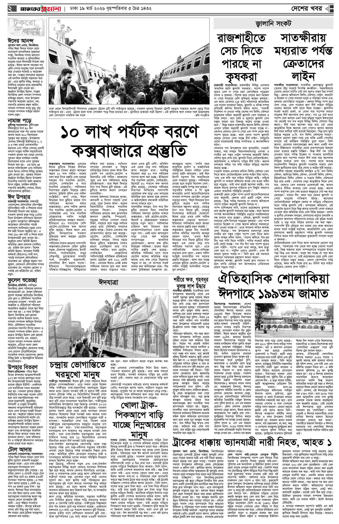 বর্ষ ৩৩ সংখ্যা ৩১৭ Page: 2 March 19, 2026 বৃহস্পতিবার ১৯ মার্চ ২০২৬ ঢাকা ৫ চৈত্র ১৪৩২ বঙ্গাব্দ ২৯ রমজান ১৪৪৭ রেজি.নং-ডিএ-১৩৯৯ Page 1Page 2Page 3Page 4Page 5Page 6Page 7Page 8 Thumbnails × বর্ষ ৩৩ সংখ্যা ৩১৭ পৃষ্ঠা-১।-প্রথম-পাতাপৃষ্ঠা-২।-দেশের-খবরপৃষ্ঠা-৩।-বিদেশের-খবরপৃষ্ঠা-৪।-উপ-সম্পাদকীয়-পৃষ্ঠা-৫।-নারী-ও-শিশুপৃষ্ঠা-৬।-খেলাধুলাপৃষ্ঠা-৭।-খবরপৃষ্ঠা-৮।-শেষের-পাতা << First << 1 2 >> Last >> Hide পৃষ্ঠা-১।-প্রথম-পাতাপৃষ্ঠা-২।-দেশের-খবরপৃষ্ঠা-৩।-বিদেশের-খবরপৃষ্ঠা-৪।-উপ-সম্পাদকীয়-পৃষ্ঠা-৫।-নারী-ও-শিশুপৃষ্ঠা-৬।-খেলাধুলাপৃষ্ঠা-৭।-খবরপৃষ্ঠা-৮।-শেষের-পাতা পৃষ্ঠা-২।-দেশের-খবর
