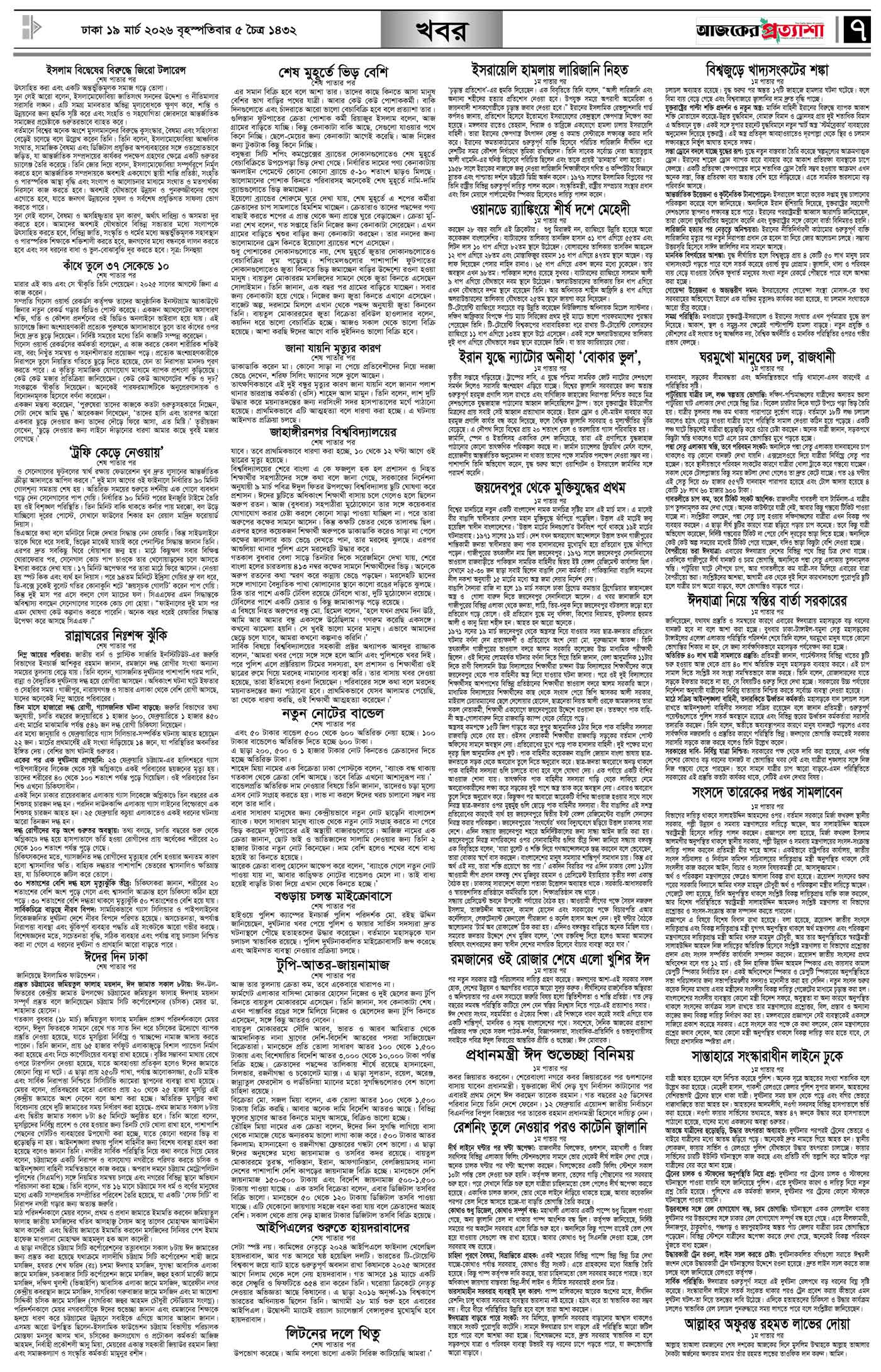 বর্ষ ৩৩ সংখ্যা ৩১৭ Page: 7 March 19, 2026 বৃহস্পতিবার ১৯ মার্চ ২০২৬ ঢাকা ৫ চৈত্র ১৪৩২ বঙ্গাব্দ ২৯ রমজান ১৪৪৭ রেজি.নং-ডিএ-১৩৯৯ Page 1Page 2Page 3Page 4Page 5Page 6Page 7Page 8 Thumbnails × বর্ষ ৩৩ সংখ্যা ৩১৭ পৃষ্ঠা-১।-প্রথম-পাতাপৃষ্ঠা-২।-দেশের-খবরপৃষ্ঠা-৩।-বিদেশের-খবরপৃষ্ঠা-৪।-উপ-সম্পাদকীয়-পৃষ্ঠা-৫।-নারী-ও-শিশুপৃষ্ঠা-৬।-খেলাধুলাপৃষ্ঠা-৭।-খবরপৃষ্ঠা-৮।-শেষের-পাতা << First << 6 7 >> Last >> Hide পৃষ্ঠা-১।-প্রথম-পাতাপৃষ্ঠা-২।-দেশের-খবরপৃষ্ঠা-৩।-বিদেশের-খবরপৃষ্ঠা-৪।-উপ-সম্পাদকীয়-পৃষ্ঠা-৫।-নারী-ও-শিশুপৃষ্ঠা-৬।-খেলাধুলাপৃষ্ঠা-৭।-খবরপৃষ্ঠা-৮।-শেষের-পাতা পৃষ্ঠা-৭।-খবর