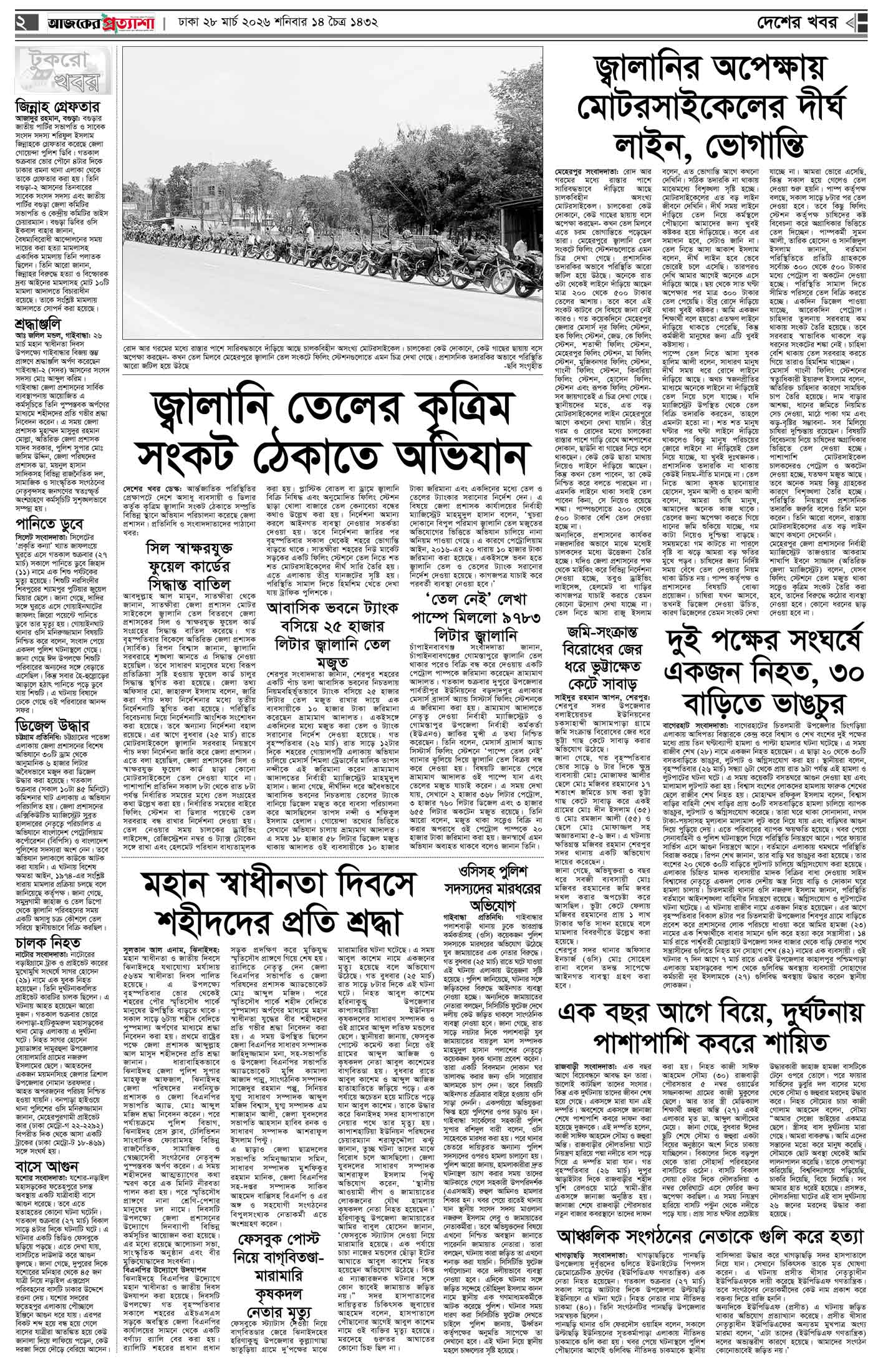 বর্ষ ৩৩ সংখ্যা ৩২০ Page: 2 March 28, 2026 শনিবার ২৮ মার্চ ২০২৬ ঢাকা ১৪ চৈত্র ১৪৩২ বঙ্গাব্দ ৮ শাওয়াল ১৪৪৭ রেজি.নং-ডিএ-১৩৯৯ Page 1Page 2Page 3Page 4Page 5Page 6Page 7Page 8 Thumbnails × বর্ষ ৩৩ সংখ্যা ৩২০ পৃষ্ঠা-১।-প্রথম-পাতাপৃষ্ঠা-২।-দেশের-খবরপৃষ্ঠা-৩।-বিদেশের-খবরপৃষ্ঠা-৪।-উপ-সম্পাদকীয়-পৃষ্ঠা-৫।-সাহিত্যপৃষ্ঠা-৬।-খেলাধুলাপৃষ্ঠা-৭।-খবরপৃষ্ঠা-৮।-শেষের-পাতা << First << 1 2 >> Last >> Hide পৃষ্ঠা-১।-প্রথম-পাতাপৃষ্ঠা-২।-দেশের-খবরপৃষ্ঠা-৩।-বিদেশের-খবরপৃষ্ঠা-৪।-উপ-সম্পাদকীয়-পৃষ্ঠা-৫।-সাহিত্যপৃষ্ঠা-৬।-খেলাধুলাপৃষ্ঠা-৭।-খবরপৃষ্ঠা-৮।-শেষের-পাতা পৃষ্ঠা-২।-দেশের-খবর