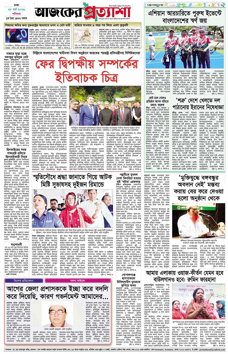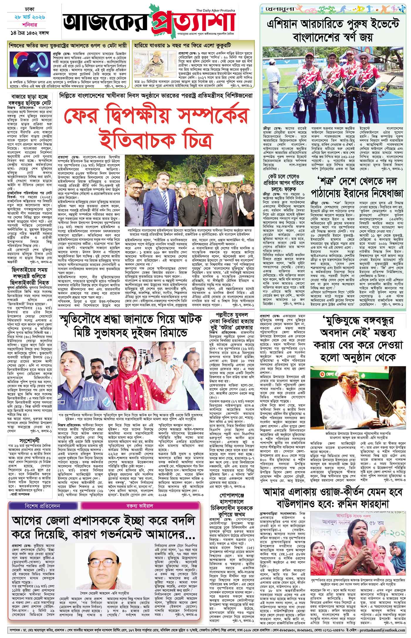 বর্ষ ৩৩ সংখ্যা ৩২০ Page: 8 March 28, 2026 শনিবার ২৮ মার্চ ২০২৬ ঢাকা ১৪ চৈত্র ১৪৩২ বঙ্গাব্দ ৮ শাওয়াল ১৪৪৭ রেজি.নং-ডিএ-১৩৯৯ Page 1Page 2Page 3Page 4Page 5Page 6Page 7Page 8 Thumbnails × বর্ষ ৩৩ সংখ্যা ৩২০ পৃষ্ঠা-১।-প্রথম-পাতাপৃষ্ঠা-২।-দেশের-খবরপৃষ্ঠা-৩।-বিদেশের-খবরপৃষ্ঠা-৪।-উপ-সম্পাদকীয়-পৃষ্ঠা-৫।-সাহিত্যপৃষ্ঠা-৬।-খেলাধুলাপৃষ্ঠা-৭।-খবরপৃষ্ঠা-৮।-শেষের-পাতা << First << 7 8 >> Last >> Hide পৃষ্ঠা-১।-প্রথম-পাতাপৃষ্ঠা-২।-দেশের-খবরপৃষ্ঠা-৩।-বিদেশের-খবরপৃষ্ঠা-৪।-উপ-সম্পাদকীয়-পৃষ্ঠা-৫।-সাহিত্যপৃষ্ঠা-৬।-খেলাধুলাপৃষ্ঠা-৭।-খবরপৃষ্ঠা-৮।-শেষের-পাতা পৃষ্ঠা-৮।-শেষের-পাতা