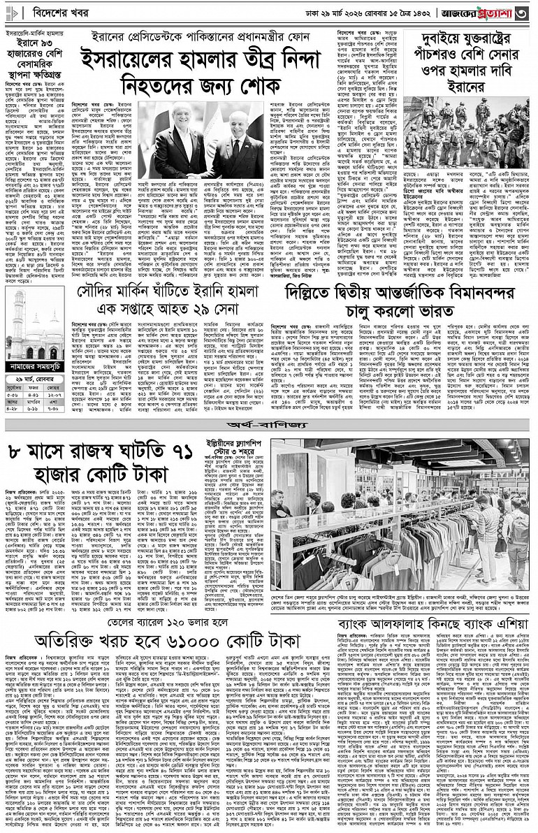 বর্ষ ৩৩ সংখ্যা ৩২১ Page: 3 March 29, 2026 রোববার ২৯ মার্চ ২০২৬ ঢাকা ১৫ চৈত্র ১৪৩২ বঙ্গাব্দ ৯ শাওয়াল ১৪৪৭ রেজি.নং-ডিএ-১৩৯৯ Page 1Page 2Page 3Page 4Page 5Page 6Page 7Page 8 Thumbnails × বর্ষ ৩৩ সংখ্যা ৩২১ পৃষ্ঠা-১।-প্রথম-পাতাপৃষ্ঠা-২।-দেশের-খবরপৃষ্ঠা-৩।-বিদেশের-খবরপৃষ্ঠা-৪।-উপ-সম্পাদকীয়-পৃষ্ঠা-৫।-বাণিজ্যপৃষ্ঠা-৬।-খেলাধুলাপৃষ্ঠা-৭।-খবরপৃষ্ঠা-৮।-শেষের-পাতা << First << 2 3 >> Last >> Hide পৃষ্ঠা-১।-প্রথম-পাতাপৃষ্ঠা-২।-দেশের-খবরপৃষ্ঠা-৩।-বিদেশের-খবরপৃষ্ঠা-৪।-উপ-সম্পাদকীয়-পৃষ্ঠা-৫।-বাণিজ্যপৃষ্ঠা-৬।-খেলাধুলাপৃষ্ঠা-৭।-খবরপৃষ্ঠা-৮।-শেষের-পাতা পৃষ্ঠা-৩।-বিদেশের-খবর