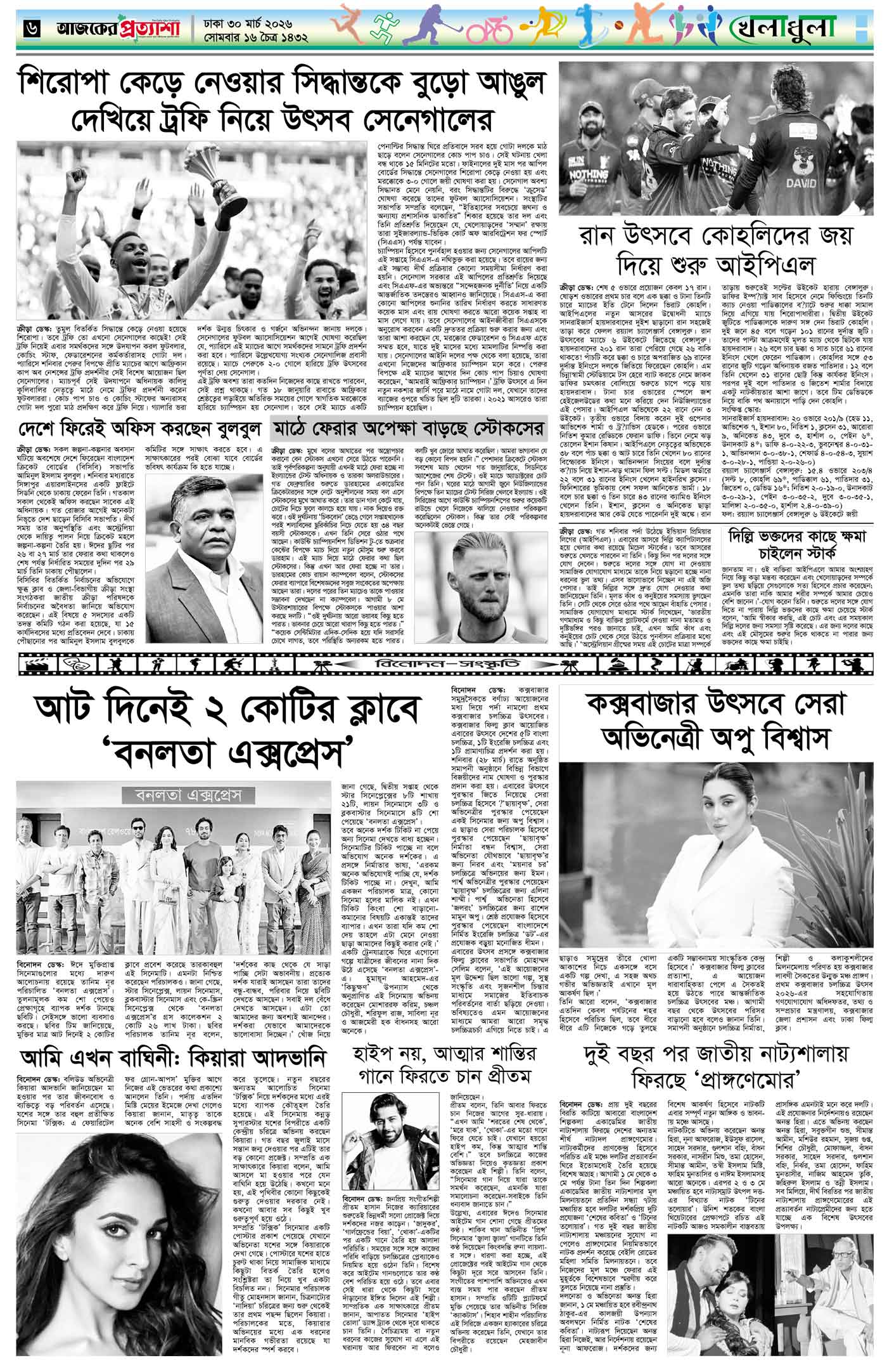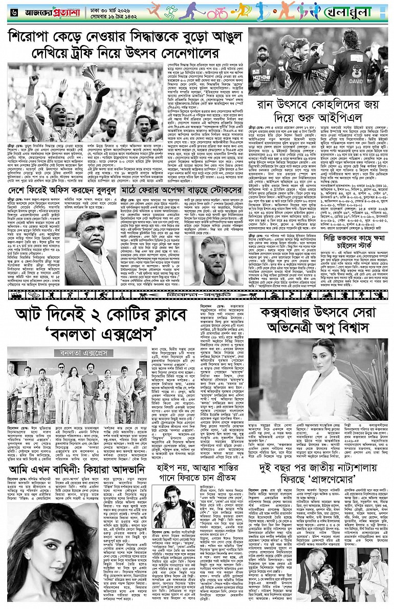 বর্ষ ৩৩ সংখ্যা ৩২২ Page: 6 March 30, 2026 সোমবার ৩০ মার্চ ২০২৬ ঢাকা ১৬ চৈত্র ১৪৩২ বঙ্গাব্দ ১০ শাওয়াল ১৪৪৭ রেজি.নং-ডিএ-১৩৯৯ Page 1Page 2Page 3Page 4Page 5Page 6Page 7Page 8 Thumbnails × বর্ষ ৩৩ সংখ্যা ৩২২ পৃষ্ঠা-১।-প্রথম-পাতাপৃষ্ঠা-২।-দেশের-খবরপৃষ্ঠা-৩।-বিদেশের-খবরপৃষ্ঠা-৪।-উপ-সম্পাদকীয়-পৃষ্ঠা-৫।-কৃষি-ও-কৃষকপৃষ্ঠা-৬।-খেলাধুলাপৃষ্ঠা-৭।-খবরপৃষ্ঠা-৮।-শেষের-পাতা << First << 5 6 >> Last >> Hide পৃষ্ঠা-১।-প্রথম-পাতাপৃষ্ঠা-২।-দেশের-খবরপৃষ্ঠা-৩।-বিদেশের-খবরপৃষ্ঠা-৪।-উপ-সম্পাদকীয়-পৃষ্ঠা-৫।-কৃষি-ও-কৃষকপৃষ্ঠা-৬।-খেলাধুলাপৃষ্ঠা-৭।-খবরপৃষ্ঠা-৮।-শেষের-পাতা পৃষ্ঠা-৬।-খেলাধুলা