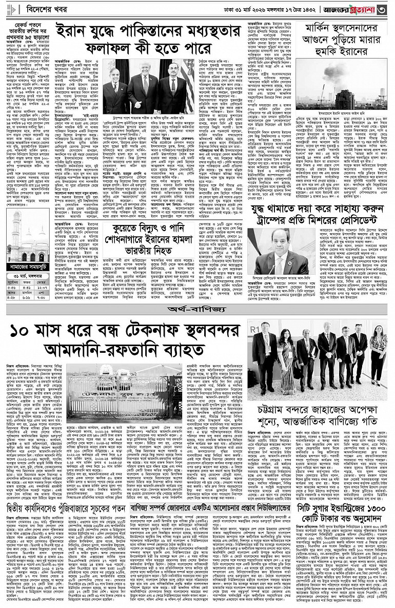 বর্ষ ৩৩ সংখ্যা ৩২৩ Page: 3 March 31, 2026 মঙ্গলবার ৩১ মার্চ ২০২৬ ঢাকা ১৭ চৈত্র ১৪৩২ বঙ্গাব্দ ১১ শাওয়াল ১৪৪৭ রেজি.নং-ডিএ-১৩৯৯ Page 1Page 2Page 3Page 4Page 5Page 6Page 7Page 8 Thumbnails × বর্ষ ৩৩ সংখ্যা ৩২৩ পৃষ্ঠা-১।-প্রথম-পাতাপৃষ্ঠা-২।-দেশের-খবরপৃষ্ঠা-৩।-বিদেশের-খবরপৃষ্ঠা-৪।-উপ-সম্পাদকীয়-পৃষ্ঠা-৫।-লাইফস্টাইলপৃষ্ঠা-৬।-খেলাধুলাপৃষ্ঠা-৭।-খবরপৃষ্ঠা-৮।-শেষের-পাতা << First << 2 3 >> Last >> Hide পৃষ্ঠা-১।-প্রথম-পাতাপৃষ্ঠা-২।-দেশের-খবরপৃষ্ঠা-৩।-বিদেশের-খবরপৃষ্ঠা-৪।-উপ-সম্পাদকীয়-পৃষ্ঠা-৫।-লাইফস্টাইলপৃষ্ঠা-৬।-খেলাধুলাপৃষ্ঠা-৭।-খবরপৃষ্ঠা-৮।-শেষের-পাতা পৃষ্ঠা-৩।-বিদেশের-খবর