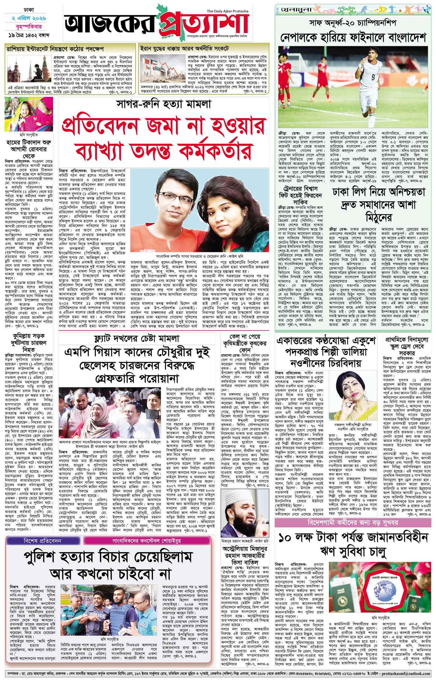 বর্ষ ৩৩ সংখ্যা ৩২৫ Page: 8 April 02, 2026 বৃহস্পতিবার ২ এপ্রিল ২০২৬ ঢাকা ১৯ চৈত্র ১৪৩২ বঙ্গাব্দ ১৩ শাওয়াল ১৪৪৭ রেজি.নং-ডিএ-১৩৯৯ Page 1Page 2Page 3Page 4Page 5Page 6Page 7Page 8 Thumbnails × বর্ষ ৩৩ সংখ্যা ৩২৫ পৃষ্ঠা-১।-প্রথম-পাতাপৃষ্ঠা-২।-দেশের-খবরপৃষ্ঠা-৩।-বিদেশের-খবরপৃষ্ঠা-৪।-উপ-সম্পাদকীয়-পৃষ্ঠা-৫।-নারী-ও-শিশুপৃষ্ঠা-৬।-খেলাধুলাপৃষ্ঠা-৭।-খবরপৃষ্ঠা-৮।-শেষের-পাতা << First << 7 8 >> Last >> Hide পৃষ্ঠা-১।-প্রথম-পাতাপৃষ্ঠা-২।-দেশের-খবরপৃষ্ঠা-৩।-বিদেশের-খবরপৃষ্ঠা-৪।-উপ-সম্পাদকীয়-পৃষ্ঠা-৫।-নারী-ও-শিশুপৃষ্ঠা-৬।-খেলাধুলাপৃষ্ঠা-৭।-খবরপৃষ্ঠা-৮।-শেষের-পাতা পৃষ্ঠা-৮।-শেষের-পাতা