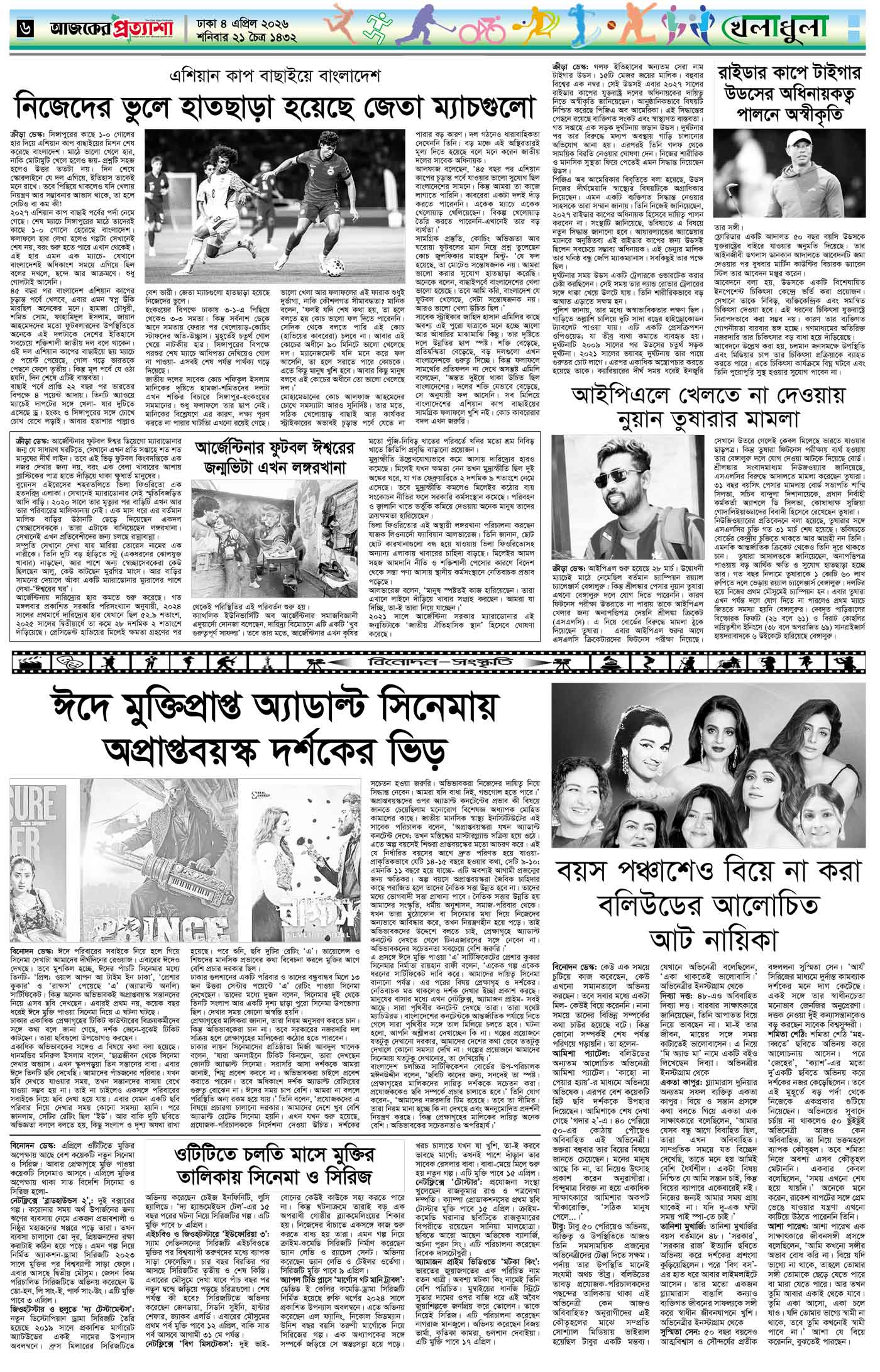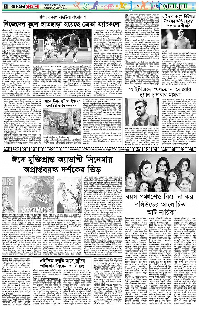 বর্ষ ৩৩ সংখ্যা ৩২৭ Page: 6 April 04, 2026 শনিবার ৪ এপ্রিল ২০২৬ ঢাকা ২১ চৈত্র ১৪৩২ বঙ্গাব্দ ১৫ শাওয়াল ১৪৪৭ রেজি.নং-ডিএ-১৩৯৯ Page 1Page 2Page 3Page 4Page 5Page 6Page 7Page 8 Thumbnails × বর্ষ ৩৩ সংখ্যা ৩২৭ পৃষ্ঠা-১।-প্রথম-পাতাপৃষ্ঠা-২।-দেশের-খবরপৃষ্ঠা-৩।-বিদেশের-খবরপৃষ্ঠা-৪।-উপ-সম্পাদকীয়-পৃষ্ঠা-৫।-সাহিত্যপৃষ্ঠা-৬।-খেলাধুলাপৃষ্ঠা-৭।-খবরপৃষ্ঠা-৮।-শেষের-পাতা << First << 5 6 >> Last >> Hide পৃষ্ঠা-১।-প্রথম-পাতাপৃষ্ঠা-২।-দেশের-খবরপৃষ্ঠা-৩।-বিদেশের-খবরপৃষ্ঠা-৪।-উপ-সম্পাদকীয়-পৃষ্ঠা-৫।-সাহিত্যপৃষ্ঠা-৬।-খেলাধুলাপৃষ্ঠা-৭।-খবরপৃষ্ঠা-৮।-শেষের-পাতা পৃষ্ঠা-৬।-খেলাধুলা