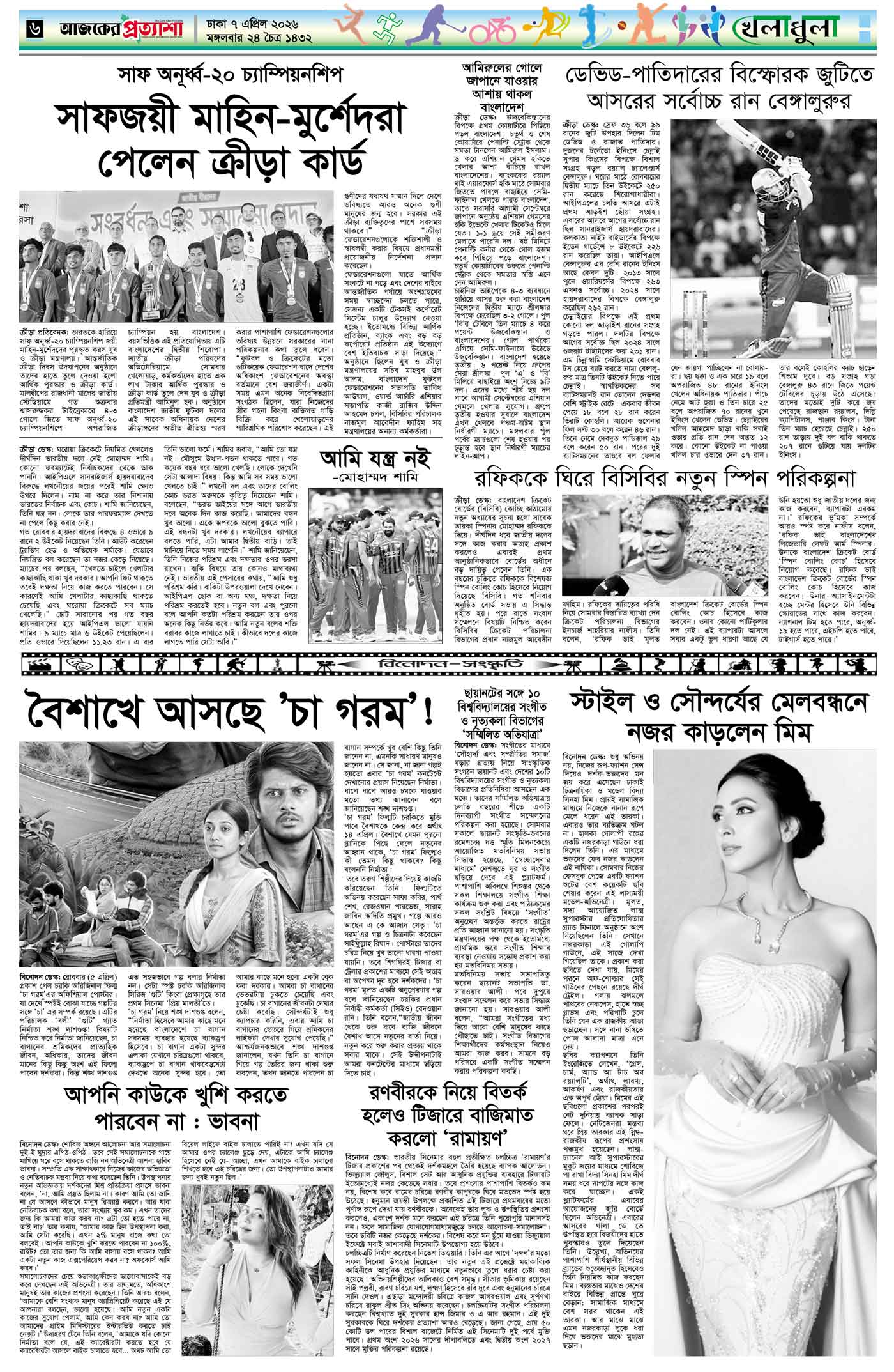 বর্ষ ৩৩ সংখ্যা ৩৩০ Page: 6 April 07, 2026 মঙ্গলবার ৭ এপ্রিল ২০২৬ ঢাকা ২৪ চৈত্র ১৪৩২ বঙ্গাব্দ ১৮ শাওয়াল ১৪৪৭ রেজি.নং-ডিএ-১৩৯৯ Page 1Page 2Page 3Page 4Page 5Page 6Page 7Page 8 Thumbnails × বর্ষ ৩৩ সংখ্যা ৩৩০ পৃষ্ঠা-১।-প্রথম-পাতাপৃষ্ঠা-২।-দেশের-খবরপৃষ্ঠা-৩।-বিদেশের-খবরপৃষ্ঠা-৪।-উপ-সম্পাদকীয়-পৃষ্ঠা-৫।-লাইফস্টাইলপৃষ্ঠা-৬।-খেলাধুলাপৃষ্ঠা-৭।-খবরপৃষ্ঠা-৮।-শেষের-পাতা << First << 5 6 >> Last >> Hide পৃষ্ঠা-১।-প্রথম-পাতাপৃষ্ঠা-২।-দেশের-খবরপৃষ্ঠা-৩।-বিদেশের-খবরপৃষ্ঠা-৪।-উপ-সম্পাদকীয়-পৃষ্ঠা-৫।-লাইফস্টাইলপৃষ্ঠা-৬।-খেলাধুলাপৃষ্ঠা-৭।-খবরপৃষ্ঠা-৮।-শেষের-পাতা পৃষ্ঠা-৬।-খেলাধুলা