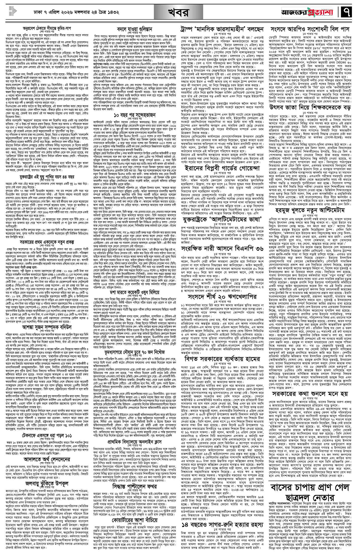 বর্ষ ৩৩ সংখ্যা ৩৩০ Page: 7 April 07, 2026 মঙ্গলবার ৭ এপ্রিল ২০২৬ ঢাকা ২৪ চৈত্র ১৪৩২ বঙ্গাব্দ ১৮ শাওয়াল ১৪৪৭ রেজি.নং-ডিএ-১৩৯৯ Page 1Page 2Page 3Page 4Page 5Page 6Page 7Page 8 Thumbnails × বর্ষ ৩৩ সংখ্যা ৩৩০ পৃষ্ঠা-১।-প্রথম-পাতাপৃষ্ঠা-২।-দেশের-খবরপৃষ্ঠা-৩।-বিদেশের-খবরপৃষ্ঠা-৪।-উপ-সম্পাদকীয়-পৃষ্ঠা-৫।-লাইফস্টাইলপৃষ্ঠা-৬।-খেলাধুলাপৃষ্ঠা-৭।-খবরপৃষ্ঠা-৮।-শেষের-পাতা << First << 6 7 >> Last >> Hide পৃষ্ঠা-১।-প্রথম-পাতাপৃষ্ঠা-২।-দেশের-খবরপৃষ্ঠা-৩।-বিদেশের-খবরপৃষ্ঠা-৪।-উপ-সম্পাদকীয়-পৃষ্ঠা-৫।-লাইফস্টাইলপৃষ্ঠা-৬।-খেলাধুলাপৃষ্ঠা-৭।-খবরপৃষ্ঠা-৮।-শেষের-পাতা পৃষ্ঠা-৭।-খবর
