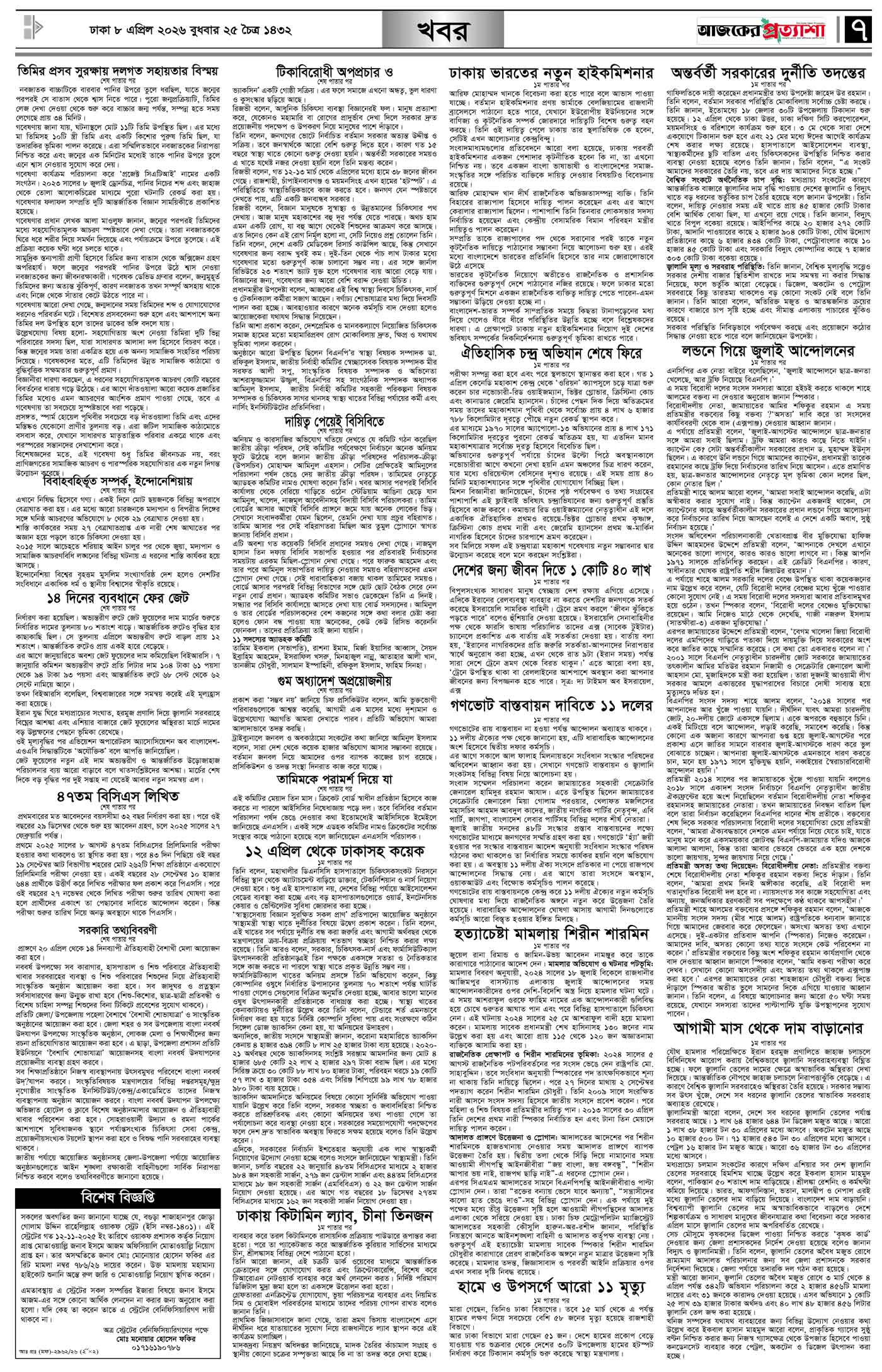 বর্ষ ৩৩ সংখ্যা ৩৩১ Page: 7 April 08, 2026 বুধবার ৮ এপ্রিল ২০২৬ ঢাকা ২৫ চৈত্র ১৪৩২ বঙ্গাব্দ ১৯ শাওয়াল ১৪৪৭ রেজি.নং-ডিএ-১৩৯৯ Page 1Page 2Page 3Page 4Page 5Page 6Page 7Page 8 Thumbnails × বর্ষ ৩৩ সংখ্যা ৩৩১ পৃষ্ঠা-১।-প্রথম-পাতাপৃষ্ঠা-২।-দেশের-খবরপৃষ্ঠা-৩।-বিদেশের-খবরপৃষ্ঠা-৪।-উপ-সম্পাদকীয়-পৃষ্ঠা-৫।-স্বাস্থ-ও-পরিচর্যাপৃষ্ঠা-৬।-খেলাধুলাপৃষ্ঠা-৭।-খবরপৃষ্ঠা-৮।-শেষের-পাতা << First << 6 7 >> Last >> Hide পৃষ্ঠা-১।-প্রথম-পাতাপৃষ্ঠা-২।-দেশের-খবরপৃষ্ঠা-৩।-বিদেশের-খবরপৃষ্ঠা-৪।-উপ-সম্পাদকীয়-পৃষ্ঠা-৫।-স্বাস্থ-ও-পরিচর্যাপৃষ্ঠা-৬।-খেলাধুলাপৃষ্ঠা-৭।-খবরপৃষ্ঠা-৮।-শেষের-পাতা পৃষ্ঠা-৭।-খবর