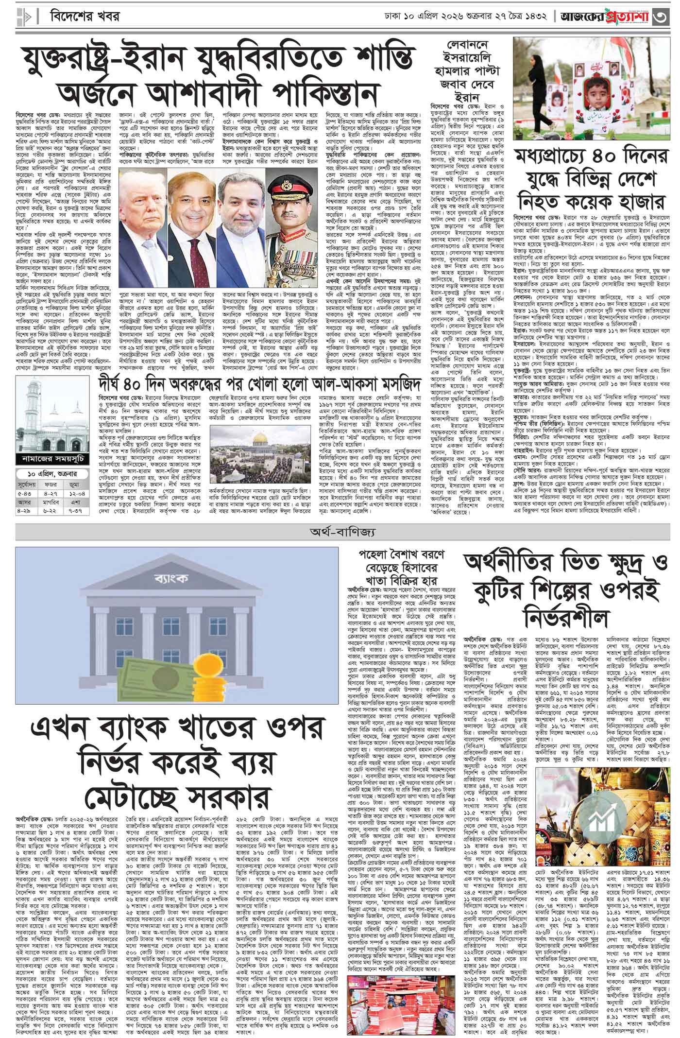 বর্ষ ৩৩ সংখ্যা ৩৩৩ Page: 2 April 10, 2026 শুক্রবার ১০ এপ্রিল ২০২৬ ঢাকা ২৭ চৈত্র ১৪৩২ বঙ্গাব্দ ২১ শাওয়াল ১৪৪৭ রেজি.নং-ডিএ-১৩৯৯ Page 1Page 2Page 3Page 4 Thumbnails × বর্ষ ৩৩ সংখ্যা ৩৩৩ পৃষ্ঠা-২।-দেশের-খবরপৃষ্ঠা-৩।-বিদেশের-খবরপৃষ্ঠা-৪।-উপ-সম্পাদকীয়-পৃষ্ঠা-৬।-খেলাধুলা << First << 1 2 >> Last >> Hide পৃষ্ঠা-২।-দেশের-খবরপৃষ্ঠা-৩।-বিদেশের-খবরপৃষ্ঠা-৪।-উপ-সম্পাদকীয়-পৃষ্ঠা-৬।-খেলাধুলা পৃষ্ঠা-৩।-বিদেশের-খবর