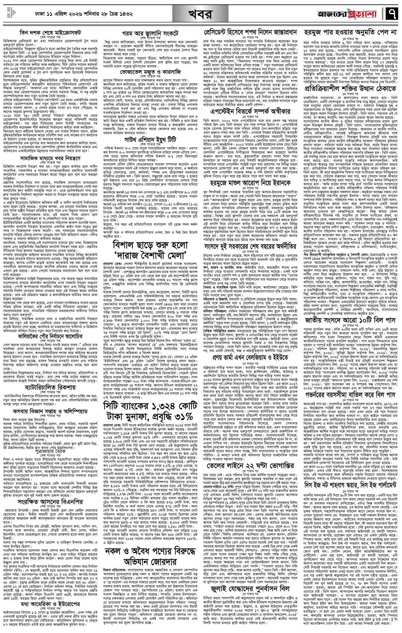 বর্ষ ৩৩ সংখ্যা ৩৩৪ Page: 7 April 11, 2026 শনিবার ১১ এপ্রিল ২০২৬ ঢাকা ২৮ চৈত্র ১৪৩২ বঙ্গাব্দ ২২ শাওয়াল ১৪৪৭ রেজি.নং-ডিএ-১৩৯৯ Page 1Page 2Page 3Page 4Page 5Page 6Page 7Page 8 Thumbnails × বর্ষ ৩৩ সংখ্যা ৩৩৪ পৃষ্ঠা-১।-প্রথম-পাতাপৃষ্ঠা-২।-দেশের-খবরপৃষ্ঠা-৩।-বিদেশের-খবরপৃষ্ঠা-৪।-উপ-সম্পাদকীয়-পৃষ্ঠা-৫।-সাহিত্যপৃষ্ঠা-৬।-খেলাধুলাপৃষ্ঠা-৭।-খবরপৃষ্ঠা-৮।-শেষের-পাতা << First << 6 7 >> Last >> Hide পৃষ্ঠা-১।-প্রথম-পাতাপৃষ্ঠা-২।-দেশের-খবরপৃষ্ঠা-৩।-বিদেশের-খবরপৃষ্ঠা-৪।-উপ-সম্পাদকীয়-পৃষ্ঠা-৫।-সাহিত্যপৃষ্ঠা-৬।-খেলাধুলাপৃষ্ঠা-৭।-খবরপৃষ্ঠা-৮।-শেষের-পাতা পৃষ্ঠা-৭।-খবর