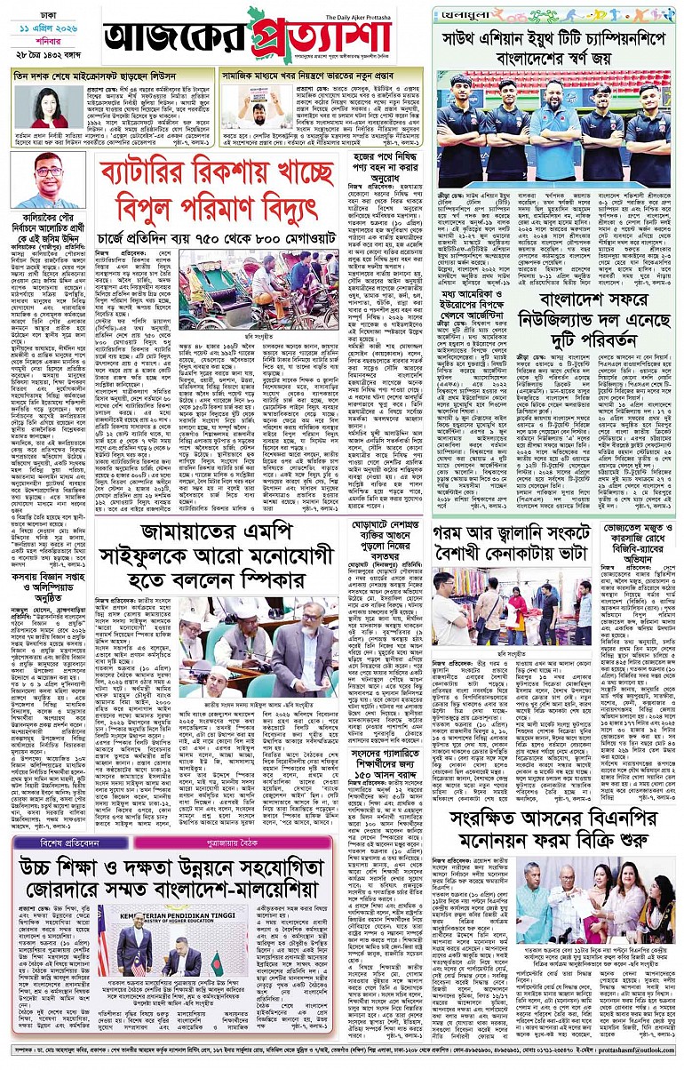 বর্ষ ৩৩ সংখ্যা ৩৩৪ Page: 8 April 11, 2026 শনিবার ১১ এপ্রিল ২০২৬ ঢাকা ২৮ চৈত্র ১৪৩২ বঙ্গাব্দ ২২ শাওয়াল ১৪৪৭ রেজি.নং-ডিএ-১৩৯৯ Page 1Page 2Page 3Page 4Page 5Page 6Page 7Page 8 Thumbnails × বর্ষ ৩৩ সংখ্যা ৩৩৪ পৃষ্ঠা-১।-প্রথম-পাতাপৃষ্ঠা-২।-দেশের-খবরপৃষ্ঠা-৩।-বিদেশের-খবরপৃষ্ঠা-৪।-উপ-সম্পাদকীয়-পৃষ্ঠা-৫।-সাহিত্যপৃষ্ঠা-৬।-খেলাধুলাপৃষ্ঠা-৭।-খবরপৃষ্ঠা-৮।-শেষের-পাতা << First << 7 8 >> Last >> Hide পৃষ্ঠা-১।-প্রথম-পাতাপৃষ্ঠা-২।-দেশের-খবরপৃষ্ঠা-৩।-বিদেশের-খবরপৃষ্ঠা-৪।-উপ-সম্পাদকীয়-পৃষ্ঠা-৫।-সাহিত্যপৃষ্ঠা-৬।-খেলাধুলাপৃষ্ঠা-৭।-খবরপৃষ্ঠা-৮।-শেষের-পাতা পৃষ্ঠা-৮।-শেষের-পাতা