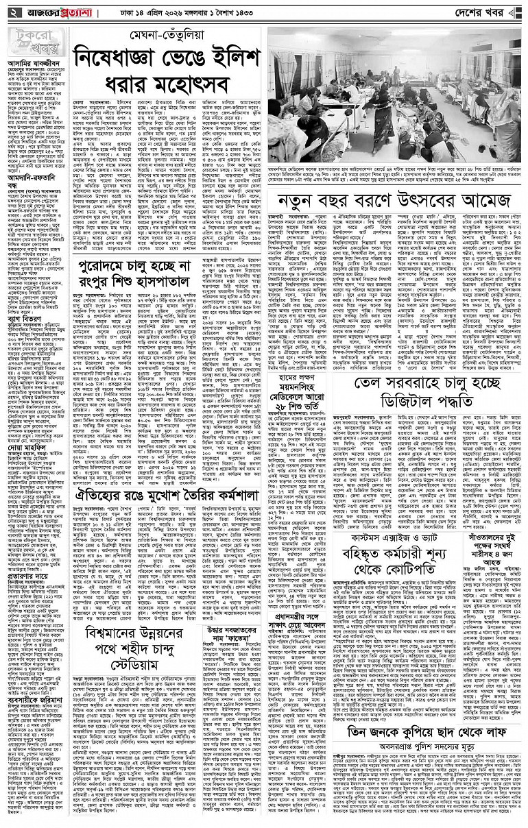 বর্ষ ৩৩ সংখ্যা ৩৩৭ Page: 2 April 14, 2026 মঙ্গলবার ১৪ এপ্রিল ২০২৬ ঢাকা ১ বৈশাখ ১৪৩২ বঙ্গাব্দ ২৫ শাওয়াল ১৪৪৭ রেজি.নং-ডিএ-১৩৯৯ Page 1Page 2Page 3Page 4Page 5Page 6Page 7Page 8 Thumbnails × বর্ষ ৩৩ সংখ্যা ৩৩৭ পৃষ্ঠা-১।-প্রথম-পাতাপৃষ্ঠা-২।-দেশের-খবরপৃষ্ঠা-৩।-বিদেশের-খবরপৃষ্ঠা-৪।-উপ-সম্পাদকীয়-পৃষ্ঠা-৫।-লাইফস্টাইলপৃষ্ঠা-৬।-খেলাধুলাপৃষ্ঠা-৭।-খবরপৃষ্ঠা-৮।-শেষের-পাতা << First << 1 2 >> Last >> Hide পৃষ্ঠা-১।-প্রথম-পাতাপৃষ্ঠা-২।-দেশের-খবরপৃষ্ঠা-৩।-বিদেশের-খবরপৃষ্ঠা-৪।-উপ-সম্পাদকীয়-পৃষ্ঠা-৫।-লাইফস্টাইলপৃষ্ঠা-৬।-খেলাধুলাপৃষ্ঠা-৭।-খবরপৃষ্ঠা-৮।-শেষের-পাতা পৃষ্ঠা-২।-দেশের-খবর