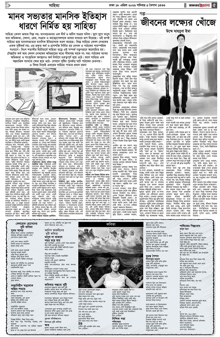 বর্ষ ৩৩ সংখ্যা ৩৪০ Page: 5 April 18, 2026 শনিবার ১৮ এপ্রিল ২০২৬ ঢাকা ৫ বৈশাখ ১৪৩২ বঙ্গাব্দ ২৯ শাওয়াল ১৪৪৭ রেজি.নং-ডিএ-১৩৯৯ Page 1Page 2Page 3Page 4Page 5Page 6Page 7Page 8 Thumbnails × বর্ষ ৩৩ সংখ্যা ৩৪০ পৃষ্ঠা-১।-প্রথম-পাতাপৃষ্ঠা-২।-দেশের-খবরপৃষ্ঠা-৩।-বিদেশের-খবরপৃষ্ঠা-৪।-উপ-সম্পাদকীয়-পৃষ্ঠা-৫।-সাহিত্যপৃষ্ঠা-৬।-খেলাধুলাপৃষ্ঠা-৭।-খবরপৃষ্ঠা-৮।-শেষের-পাতা << First << 4 5 >> Last >> Hide পৃষ্ঠা-১।-প্রথম-পাতাপৃষ্ঠা-২।-দেশের-খবরপৃষ্ঠা-৩।-বিদেশের-খবরপৃষ্ঠা-৪।-উপ-সম্পাদকীয়-পৃষ্ঠা-৫।-সাহিত্যপৃষ্ঠা-৬।-খেলাধুলাপৃষ্ঠা-৭।-খবরপৃষ্ঠা-৮।-শেষের-পাতা পৃষ্ঠা-৫।-সাহিত্য