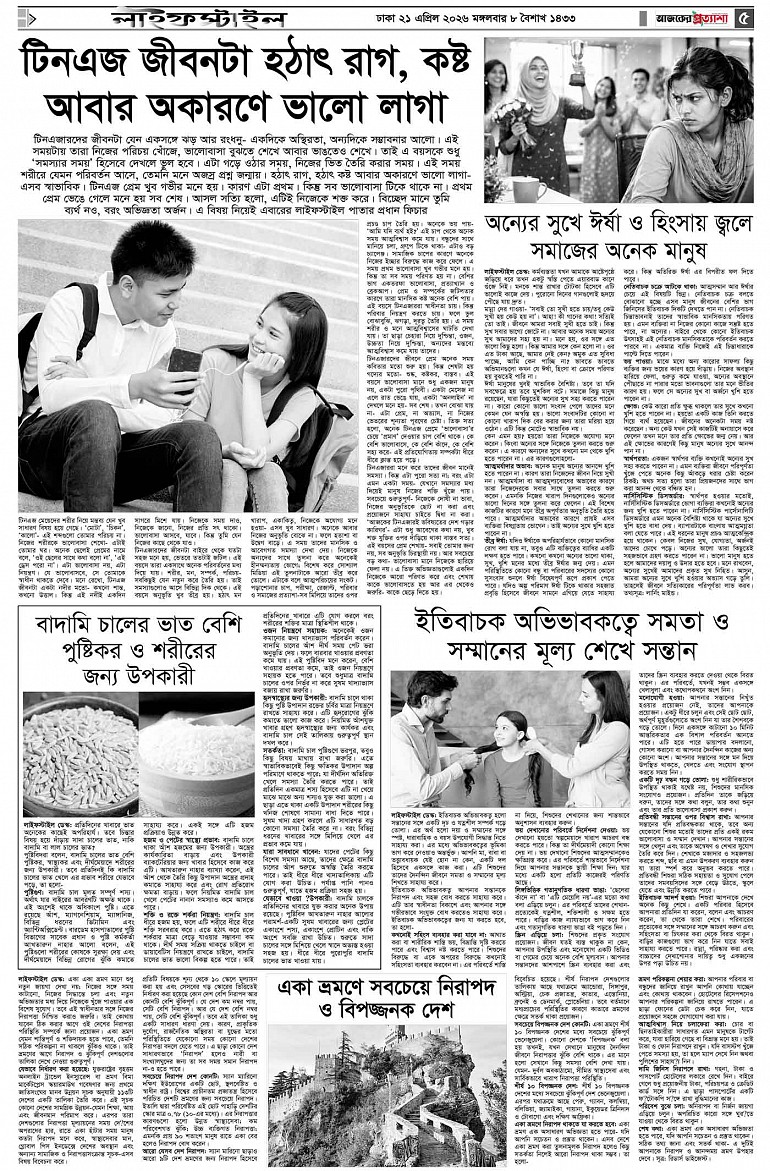বর্ষ ৩৩ সংখ্যা ৩৪৩ Page: 5 April 21, 2026 মঙ্গলবার ২১ এপ্রিল ২০২৬ ঢাকা ৮ বৈশাখ ১৪৩৩ বঙ্গাব্দ ৩ জিলকদ ১৪৪৭ রেজি.নং-ডিএ-১৩৯৯ Page 1Page 2Page 3Page 4Page 5Page 6Page 7Page 8 Thumbnails × বর্ষ ৩৩ সংখ্যা ৩৪৩ পৃষ্ঠা-১।-প্রথম-পাতাপৃষ্ঠা-২।-দেশের-খবরপৃষ্ঠা-৩।-বিদেশের-খবরপৃষ্ঠা-৪।-উপ-সম্পাদকীয়-পৃষ্ঠা-৫।-লাইফস্টাইলপৃষ্ঠা-৬।-খেলাধুলাপৃষ্ঠা-৭।-খবরপৃষ্ঠা-৮।-শেষের-পাতা << First << 4 5 >> Last >> Hide পৃষ্ঠা-১।-প্রথম-পাতাপৃষ্ঠা-২।-দেশের-খবরপৃষ্ঠা-৩।-বিদেশের-খবরপৃষ্ঠা-৪।-উপ-সম্পাদকীয়-পৃষ্ঠা-৫।-লাইফস্টাইলপৃষ্ঠা-৬।-খেলাধুলাপৃষ্ঠা-৭।-খবরপৃষ্ঠা-৮।-শেষের-পাতা পৃষ্ঠা-৫।-লাইফস্টাইল