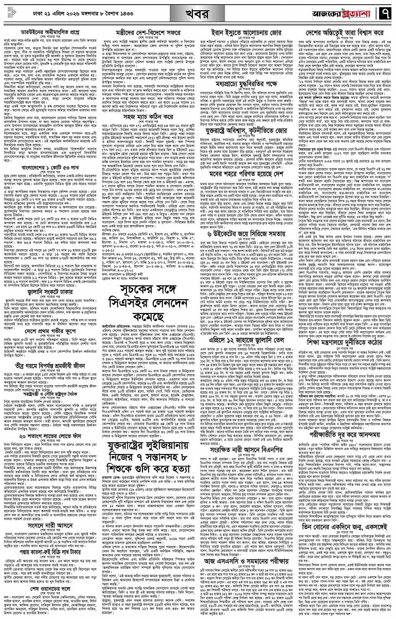 বর্ষ ৩৩ সংখ্যা ৩৪৩ Page: 7 April 21, 2026 মঙ্গলবার ২১ এপ্রিল ২০২৬ ঢাকা ৮ বৈশাখ ১৪৩৩ বঙ্গাব্দ ৩ জিলকদ ১৪৪৭ রেজি.নং-ডিএ-১৩৯৯ Page 1Page 2Page 3Page 4Page 5Page 6Page 7Page 8 Thumbnails × বর্ষ ৩৩ সংখ্যা ৩৪৩ পৃষ্ঠা-১।-প্রথম-পাতাপৃষ্ঠা-২।-দেশের-খবরপৃষ্ঠা-৩।-বিদেশের-খবরপৃষ্ঠা-৪।-উপ-সম্পাদকীয়-পৃষ্ঠা-৫।-লাইফস্টাইলপৃষ্ঠা-৬।-খেলাধুলাপৃষ্ঠা-৭।-খবরপৃষ্ঠা-৮।-শেষের-পাতা << First << 6 7 >> Last >> Hide পৃষ্ঠা-১।-প্রথম-পাতাপৃষ্ঠা-২।-দেশের-খবরপৃষ্ঠা-৩।-বিদেশের-খবরপৃষ্ঠা-৪।-উপ-সম্পাদকীয়-পৃষ্ঠা-৫।-লাইফস্টাইলপৃষ্ঠা-৬।-খেলাধুলাপৃষ্ঠা-৭।-খবরপৃষ্ঠা-৮।-শেষের-পাতা পৃষ্ঠা-৭।-খবর