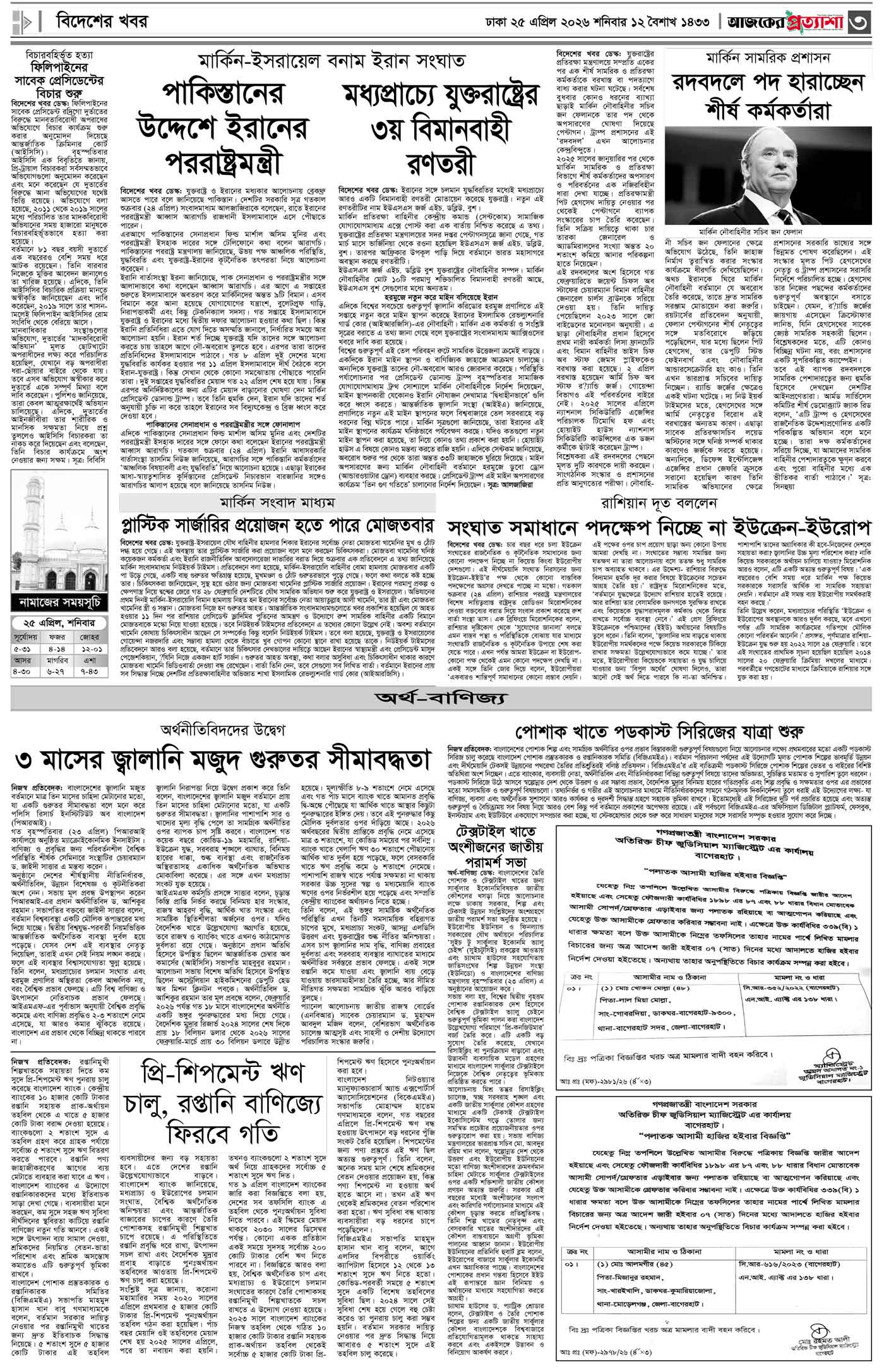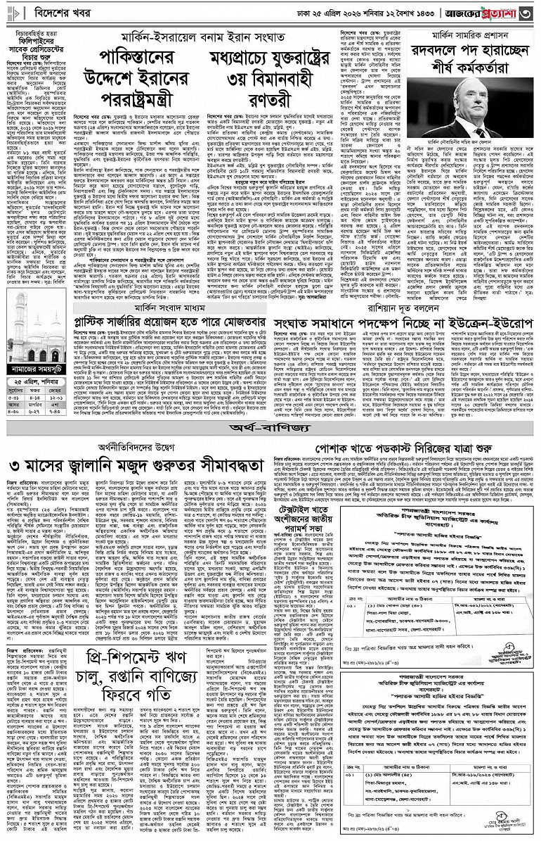 বর্ষ ৩৩ সংখ্যা ৩৪৭ Page: 3 April 25, 2026 শনিবার ২৫ এপ্রিল ২০২৬ ঢাকা ১২ বৈশাখ ১৪৩৩ বঙ্গাব্দ ৭ জিলকদ ১৪৪৭ রেজি.নং-ডিএ-১৩৯৯ Page 1Page 2Page 3Page 4Page 5Page 6Page 7Page 8 Thumbnails × বর্ষ ৩৩ সংখ্যা ৩৪৭ পৃষ্ঠা-১।-প্রথম-পাতাপৃষ্ঠা-২।-দেশের-খবরপৃষ্ঠা-৩।-বিদেশের-খবরপৃষ্ঠা-৪।-উপ-সম্পাদকীয়-পৃষ্ঠা-৫।-সাহিত্যপৃষ্ঠা-৬।-খেলাধুলাপৃষ্ঠা-৭।-খবরপৃষ্ঠা-৮।-শেষের-পাতা << First << 2 3 >> Last >> Hide পৃষ্ঠা-১।-প্রথম-পাতাপৃষ্ঠা-২।-দেশের-খবরপৃষ্ঠা-৩।-বিদেশের-খবরপৃষ্ঠা-৪।-উপ-সম্পাদকীয়-পৃষ্ঠা-৫।-সাহিত্যপৃষ্ঠা-৬।-খেলাধুলাপৃষ্ঠা-৭।-খবরপৃষ্ঠা-৮।-শেষের-পাতা পৃষ্ঠা-৩।-বিদেশের-খবর