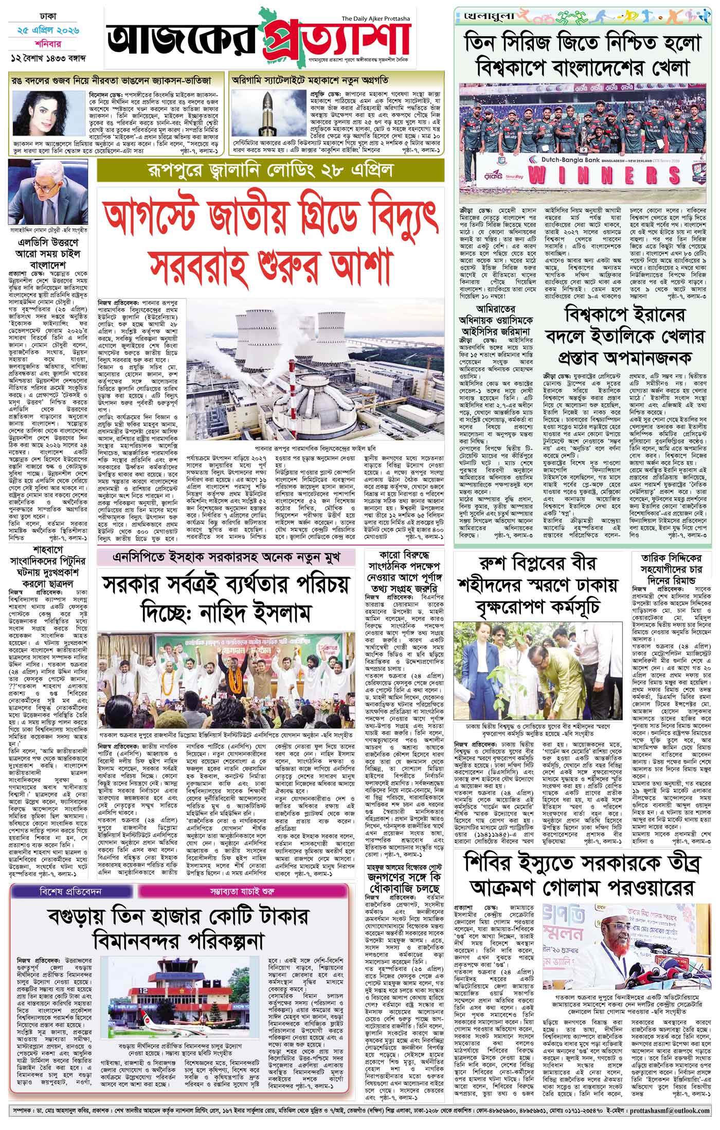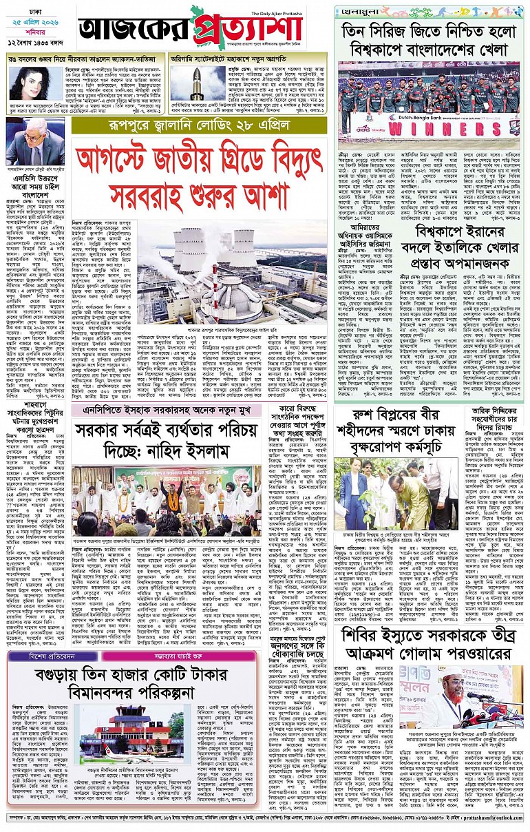 বর্ষ ৩৩ সংখ্যা ৩৪৭ Page: 8 April 25, 2026 শনিবার ২৫ এপ্রিল ২০২৬ ঢাকা ১২ বৈশাখ ১৪৩৩ বঙ্গাব্দ ৭ জিলকদ ১৪৪৭ রেজি.নং-ডিএ-১৩৯৯ Page 1Page 2Page 3Page 4Page 5Page 6Page 7Page 8 Thumbnails × বর্ষ ৩৩ সংখ্যা ৩৪৭ পৃষ্ঠা-১।-প্রথম-পাতাপৃষ্ঠা-২।-দেশের-খবরপৃষ্ঠা-৩।-বিদেশের-খবরপৃষ্ঠা-৪।-উপ-সম্পাদকীয়-পৃষ্ঠা-৫।-সাহিত্যপৃষ্ঠা-৬।-খেলাধুলাপৃষ্ঠা-৭।-খবরপৃষ্ঠা-৮।-শেষের-পাতা << First << 7 8 >> Last >> Hide পৃষ্ঠা-১।-প্রথম-পাতাপৃষ্ঠা-২।-দেশের-খবরপৃষ্ঠা-৩।-বিদেশের-খবরপৃষ্ঠা-৪।-উপ-সম্পাদকীয়-পৃষ্ঠা-৫।-সাহিত্যপৃষ্ঠা-৬।-খেলাধুলাপৃষ্ঠা-৭।-খবরপৃষ্ঠা-৮।-শেষের-পাতা পৃষ্ঠা-৮।-শেষের-পাতা