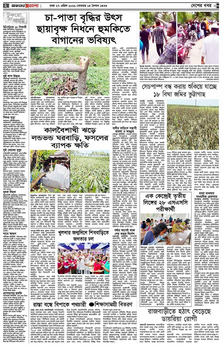 বর্ষ ৩৩ সংখ্যা ৩৪৯ Page: 2 April 27, 2026 সোমবার ২৭ এপ্রিল ২০২৬ ঢাকা ১৪ বৈশাখ ১৪৩৩ বঙ্গাব্দ ৯ জিলকদ ১৪৪৭ রেজি.নং-ডিএ-১৩৯৯ Page 1Page 2Page 3Page 4Page 5Page 6Page 7Page 8 Thumbnails × বর্ষ ৩৩ সংখ্যা ৩৪৯ পৃষ্ঠা-১।-প্রথম-পাতাপৃষ্ঠা-২।-দেশের-খবরপৃষ্ঠা-৩।-বিদেশের-খবরপৃষ্ঠা-৪।-উপ-সম্পাদকীয়-পৃষ্ঠা-৫।-কৃষি-ও-কৃষকপৃষ্ঠা-৬।-খেলাধুলাপৃষ্ঠা-৭।-খবরপৃষ্ঠা-৮।-শেষের-পাতা << First << 1 2 >> Last >> Hide পৃষ্ঠা-১।-প্রথম-পাতাপৃষ্ঠা-২।-দেশের-খবরপৃষ্ঠা-৩।-বিদেশের-খবরপৃষ্ঠা-৪।-উপ-সম্পাদকীয়-পৃষ্ঠা-৫।-কৃষি-ও-কৃষকপৃষ্ঠা-৬।-খেলাধুলাপৃষ্ঠা-৭।-খবরপৃষ্ঠা-৮।-শেষের-পাতা পৃষ্ঠা-২।-দেশের-খবর