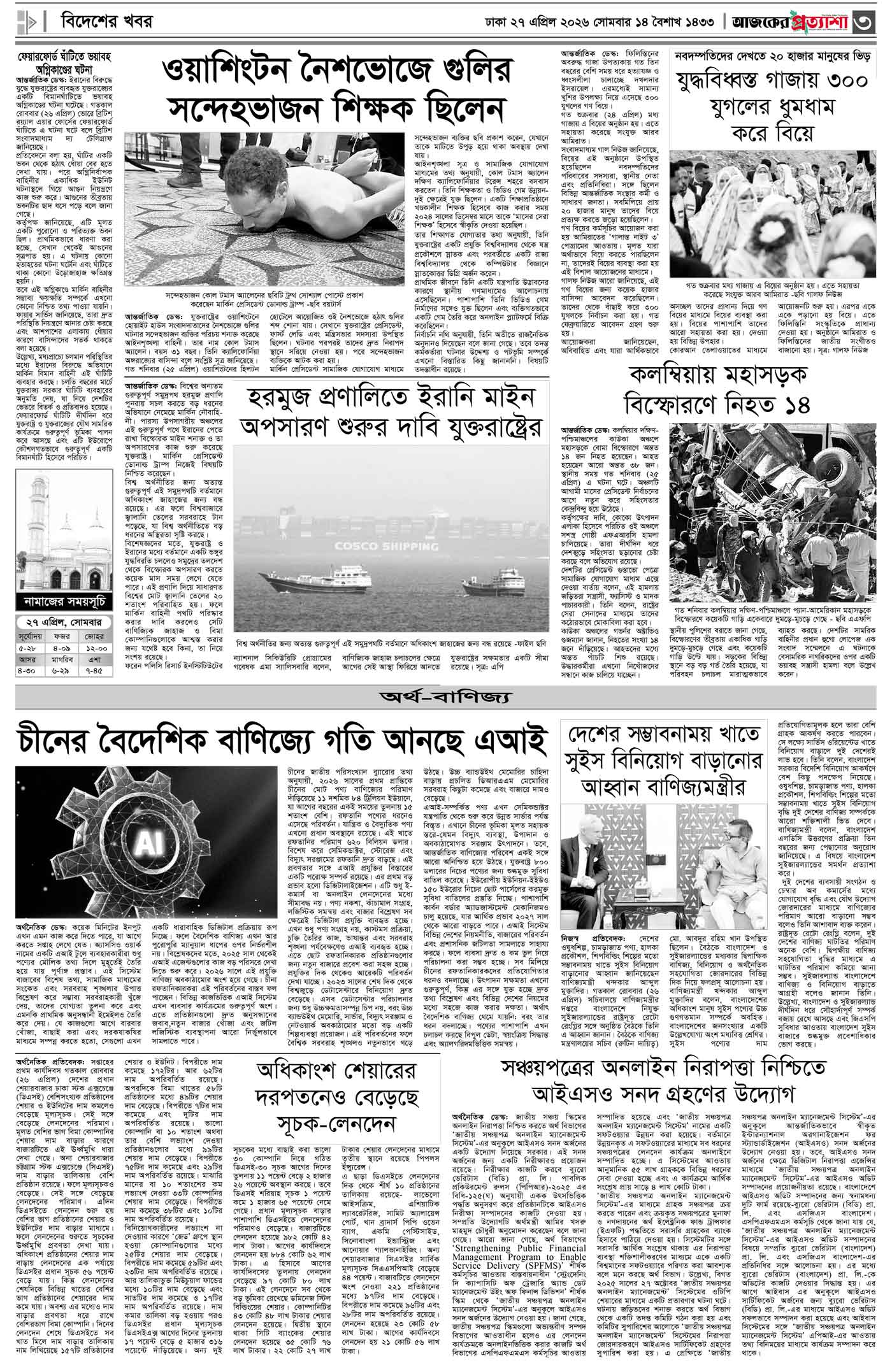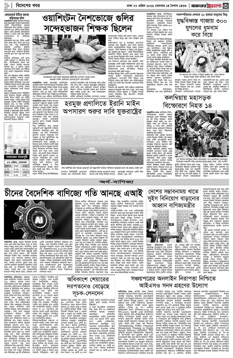 বর্ষ ৩৩ সংখ্যা ৩৪৯ Page: 3 April 27, 2026 সোমবার ২৭ এপ্রিল ২০২৬ ঢাকা ১৪ বৈশাখ ১৪৩৩ বঙ্গাব্দ ৯ জিলকদ ১৪৪৭ রেজি.নং-ডিএ-১৩৯৯ Page 1Page 2Page 3Page 4Page 5Page 6Page 7Page 8 Thumbnails × বর্ষ ৩৩ সংখ্যা ৩৪৯ পৃষ্ঠা-১।-প্রথম-পাতাপৃষ্ঠা-২।-দেশের-খবরপৃষ্ঠা-৩।-বিদেশের-খবরপৃষ্ঠা-৪।-উপ-সম্পাদকীয়-পৃষ্ঠা-৫।-কৃষি-ও-কৃষকপৃষ্ঠা-৬।-খেলাধুলাপৃষ্ঠা-৭।-খবরপৃষ্ঠা-৮।-শেষের-পাতা << First << 2 3 >> Last >> Hide পৃষ্ঠা-১।-প্রথম-পাতাপৃষ্ঠা-২।-দেশের-খবরপৃষ্ঠা-৩।-বিদেশের-খবরপৃষ্ঠা-৪।-উপ-সম্পাদকীয়-পৃষ্ঠা-৫।-কৃষি-ও-কৃষকপৃষ্ঠা-৬।-খেলাধুলাপৃষ্ঠা-৭।-খবরপৃষ্ঠা-৮।-শেষের-পাতা পৃষ্ঠা-৩।-বিদেশের-খবর