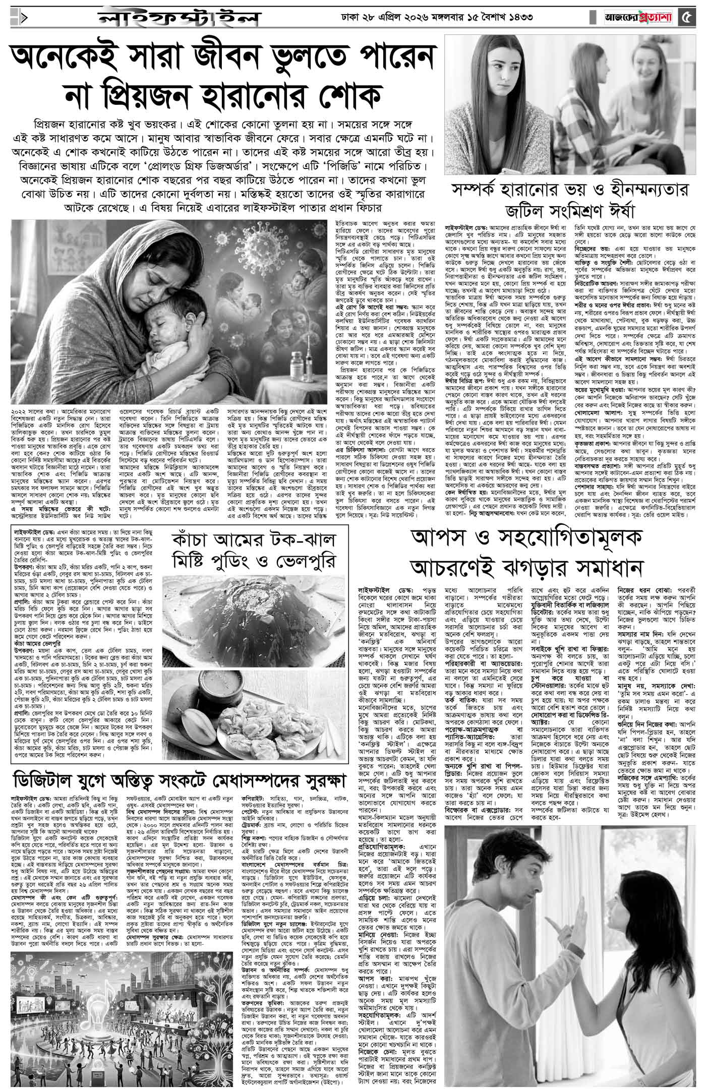 বর্ষ ৩৩ সংখ্যা ৩৫০ Page: 5 April 28, 2026 মঙ্গলবার ২৮ এপ্রিল ২০২৬ ঢাকা ১৫ বৈশাখ ১৪৩৩ বঙ্গাব্দ ১০ জিলকদ ১৪৪৭ রেজি.নং-ডিএ-১৩৯৯ Page 1Page 2Page 3Page 4Page 5Page 6Page 7Page 8 Thumbnails × বর্ষ ৩৩ সংখ্যা ৩৫০ পৃষ্ঠা-১।-প্রথম-পাতাপৃষ্ঠা-২।-দেশের-খবরপৃষ্ঠা-৩।-বিদেশের-খবরপৃষ্ঠা-৪।-উপ-সম্পাদকীয়-পৃষ্ঠা-৫।-লাইফস্টাইলপৃষ্ঠা-৬।-খেলাধুলাপৃষ্ঠা-৭।-খবরপৃষ্ঠা-৮।-শেষের-পাতা << First << 4 5 >> Last >> Hide পৃষ্ঠা-১।-প্রথম-পাতাপৃষ্ঠা-২।-দেশের-খবরপৃষ্ঠা-৩।-বিদেশের-খবরপৃষ্ঠা-৪।-উপ-সম্পাদকীয়-পৃষ্ঠা-৫।-লাইফস্টাইলপৃষ্ঠা-৬।-খেলাধুলাপৃষ্ঠা-৭।-খবরপৃষ্ঠা-৮।-শেষের-পাতা পৃষ্ঠা-৫।-লাইফস্টাইল