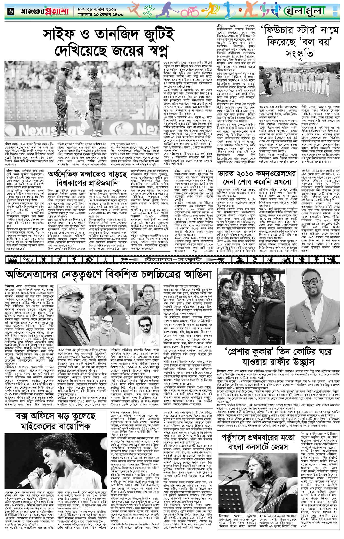 বর্ষ ৩৩ সংখ্যা ৩৫০ Page: 6 April 28, 2026 মঙ্গলবার ২৮ এপ্রিল ২০২৬ ঢাকা ১৫ বৈশাখ ১৪৩৩ বঙ্গাব্দ ১০ জিলকদ ১৪৪৭ রেজি.নং-ডিএ-১৩৯৯ Page 1Page 2Page 3Page 4Page 5Page 6Page 7Page 8 Thumbnails × বর্ষ ৩৩ সংখ্যা ৩৫০ পৃষ্ঠা-১।-প্রথম-পাতাপৃষ্ঠা-২।-দেশের-খবরপৃষ্ঠা-৩।-বিদেশের-খবরপৃষ্ঠা-৪।-উপ-সম্পাদকীয়-পৃষ্ঠা-৫।-লাইফস্টাইলপৃষ্ঠা-৬।-খেলাধুলাপৃষ্ঠা-৭।-খবরপৃষ্ঠা-৮।-শেষের-পাতা << First << 5 6 >> Last >> Hide পৃষ্ঠা-১।-প্রথম-পাতাপৃষ্ঠা-২।-দেশের-খবরপৃষ্ঠা-৩।-বিদেশের-খবরপৃষ্ঠা-৪।-উপ-সম্পাদকীয়-পৃষ্ঠা-৫।-লাইফস্টাইলপৃষ্ঠা-৬।-খেলাধুলাপৃষ্ঠা-৭।-খবরপৃষ্ঠা-৮।-শেষের-পাতা পৃষ্ঠা-৬।-খেলাধুলা