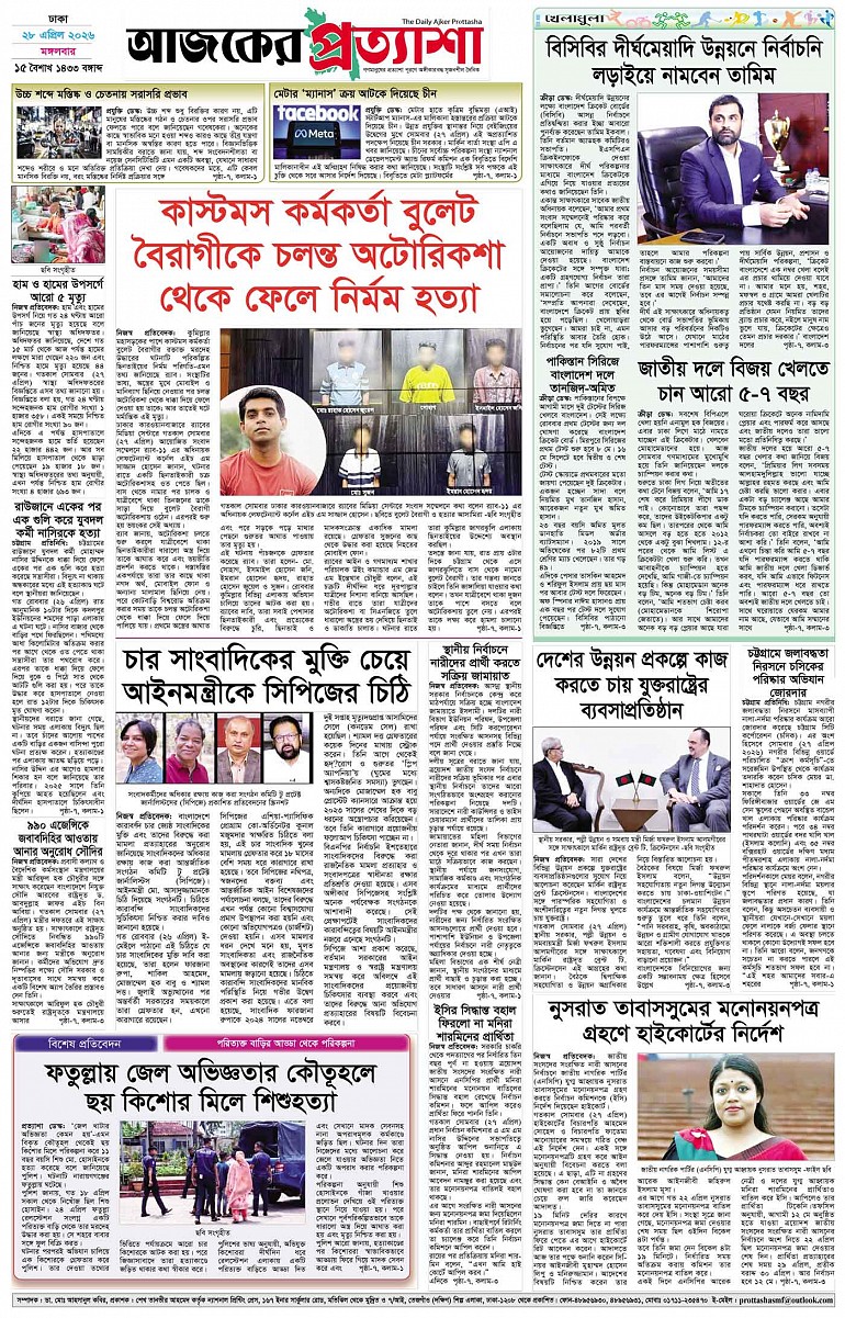 বর্ষ ৩৩ সংখ্যা ৩৫০ Page: 8 April 28, 2026 মঙ্গলবার ২৮ এপ্রিল ২০২৬ ঢাকা ১৫ বৈশাখ ১৪৩৩ বঙ্গাব্দ ১০ জিলকদ ১৪৪৭ রেজি.নং-ডিএ-১৩৯৯ Page 1Page 2Page 3Page 4Page 5Page 6Page 7Page 8 Thumbnails × বর্ষ ৩৩ সংখ্যা ৩৫০ পৃষ্ঠা-১।-প্রথম-পাতাপৃষ্ঠা-২।-দেশের-খবরপৃষ্ঠা-৩।-বিদেশের-খবরপৃষ্ঠা-৪।-উপ-সম্পাদকীয়-পৃষ্ঠা-৫।-লাইফস্টাইলপৃষ্ঠা-৬।-খেলাধুলাপৃষ্ঠা-৭।-খবরপৃষ্ঠা-৮।-শেষের-পাতা << First << 7 8 >> Last >> Hide পৃষ্ঠা-১।-প্রথম-পাতাপৃষ্ঠা-২।-দেশের-খবরপৃষ্ঠা-৩।-বিদেশের-খবরপৃষ্ঠা-৪।-উপ-সম্পাদকীয়-পৃষ্ঠা-৫।-লাইফস্টাইলপৃষ্ঠা-৬।-খেলাধুলাপৃষ্ঠা-৭।-খবরপৃষ্ঠা-৮।-শেষের-পাতা পৃষ্ঠা-৮।-শেষের-পাতা