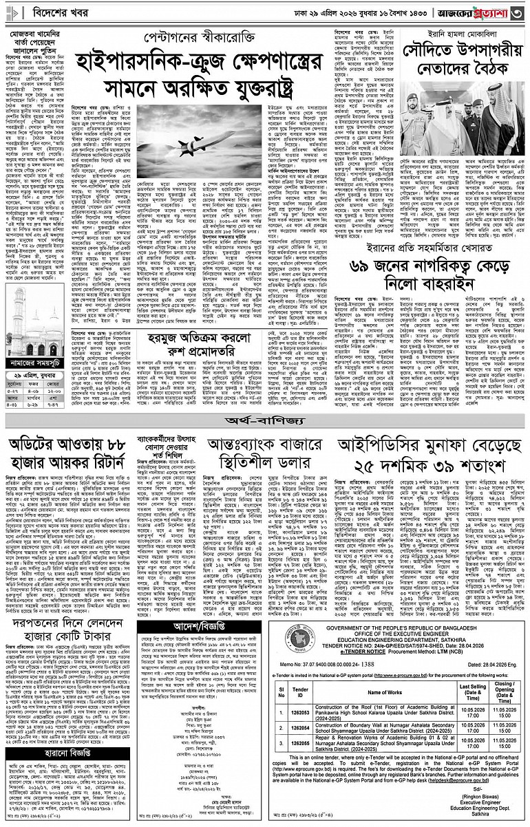 বর্ষ ৩৩ সংখ্যা ৩৫১ Page: 3 April 29, 2026 বুধবার ২৯ এপ্রিল ২০২৬ ঢাকা ১৬ বৈশাখ ১৪৩৩ বঙ্গাব্দ ১১ জিলকদ ১৪৪৭ রেজি.নং-ডিএ-১৩৯৯ Page 1Page 2Page 3Page 4Page 5Page 6Page 7Page 8 Thumbnails × বর্ষ ৩৩ সংখ্যা ৩৫১ পৃষ্ঠা-১।-প্রথম-পাতাপৃষ্ঠা-২।-দেশের-খবরপৃষ্ঠা-৩।-বিদেশের-খবরপৃষ্ঠা-৪।-উপ-সম্পাদকীয়-পৃষ্ঠা-৫।-স্বাস্থ-ও-পরিচর্যাপৃষ্ঠা-৬।-খেলাধুলাপৃষ্ঠা-৭।-খবরপৃষ্ঠা-৮।-শেষের-পাতা << First << 2 3 >> Last >> Hide পৃষ্ঠা-১।-প্রথম-পাতাপৃষ্ঠা-২।-দেশের-খবরপৃষ্ঠা-৩।-বিদেশের-খবরপৃষ্ঠা-৪।-উপ-সম্পাদকীয়-পৃষ্ঠা-৫।-স্বাস্থ-ও-পরিচর্যাপৃষ্ঠা-৬।-খেলাধুলাপৃষ্ঠা-৭।-খবরপৃষ্ঠা-৮।-শেষের-পাতা পৃষ্ঠা-৩।-বিদেশের-খবর