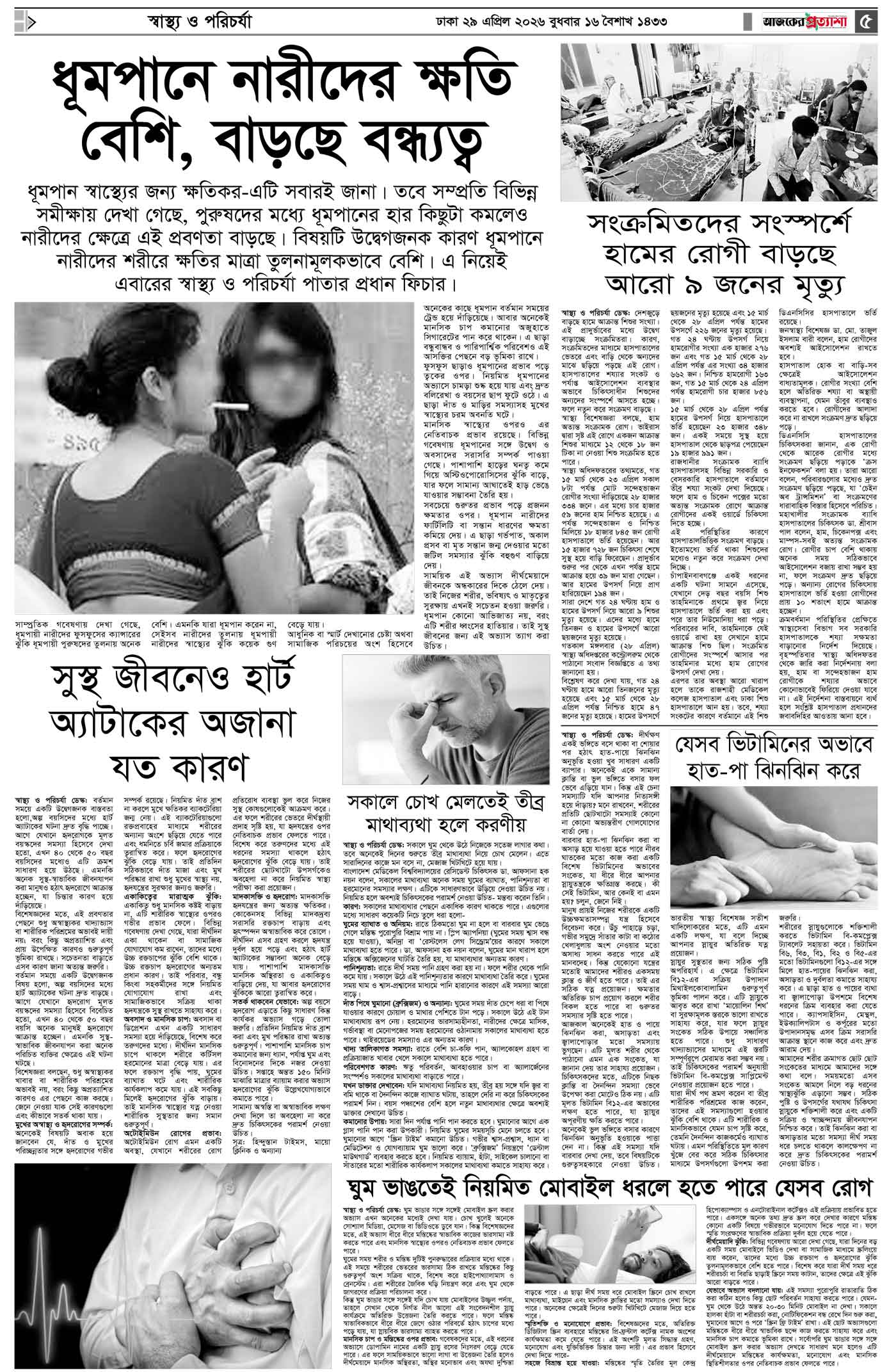 বর্ষ ৩৩ সংখ্যা ৩৫১ Page: 5 April 29, 2026 বুধবার ২৯ এপ্রিল ২০২৬ ঢাকা ১৬ বৈশাখ ১৪৩৩ বঙ্গাব্দ ১১ জিলকদ ১৪৪৭ রেজি.নং-ডিএ-১৩৯৯ Page 1Page 2Page 3Page 4Page 5Page 6Page 7Page 8 Thumbnails × বর্ষ ৩৩ সংখ্যা ৩৫১ পৃষ্ঠা-১।-প্রথম-পাতাপৃষ্ঠা-২।-দেশের-খবরপৃষ্ঠা-৩।-বিদেশের-খবরপৃষ্ঠা-৪।-উপ-সম্পাদকীয়-পৃষ্ঠা-৫।-স্বাস্থ-ও-পরিচর্যাপৃষ্ঠা-৬।-খেলাধুলাপৃষ্ঠা-৭।-খবরপৃষ্ঠা-৮।-শেষের-পাতা << First << 4 5 >> Last >> Hide পৃষ্ঠা-১।-প্রথম-পাতাপৃষ্ঠা-২।-দেশের-খবরপৃষ্ঠা-৩।-বিদেশের-খবরপৃষ্ঠা-৪।-উপ-সম্পাদকীয়-পৃষ্ঠা-৫।-স্বাস্থ-ও-পরিচর্যাপৃষ্ঠা-৬।-খেলাধুলাপৃষ্ঠা-৭।-খবরপৃষ্ঠা-৮।-শেষের-পাতা পৃষ্ঠা-৫।-স্বাস্থ-ও-পরিচর্যা