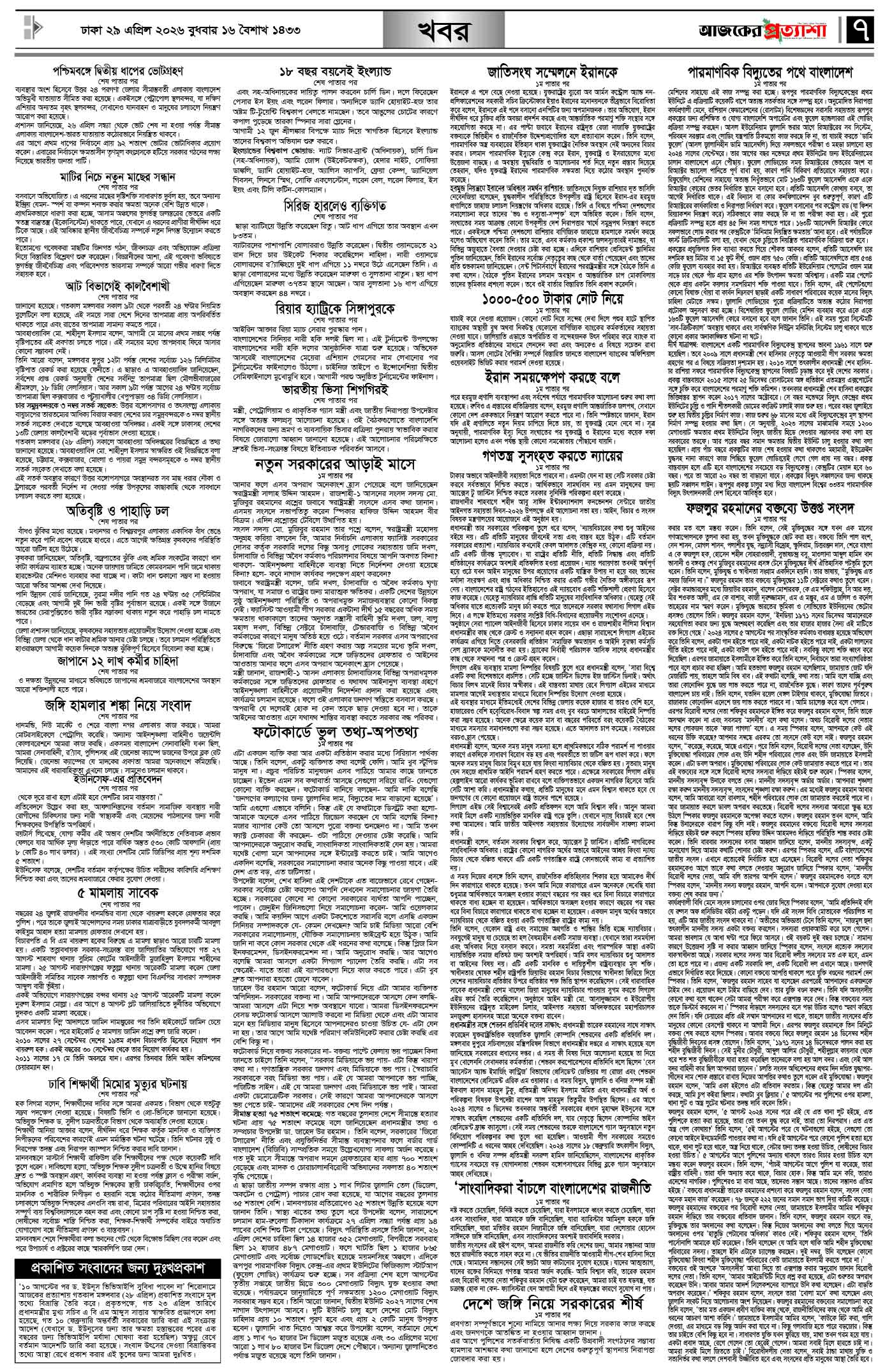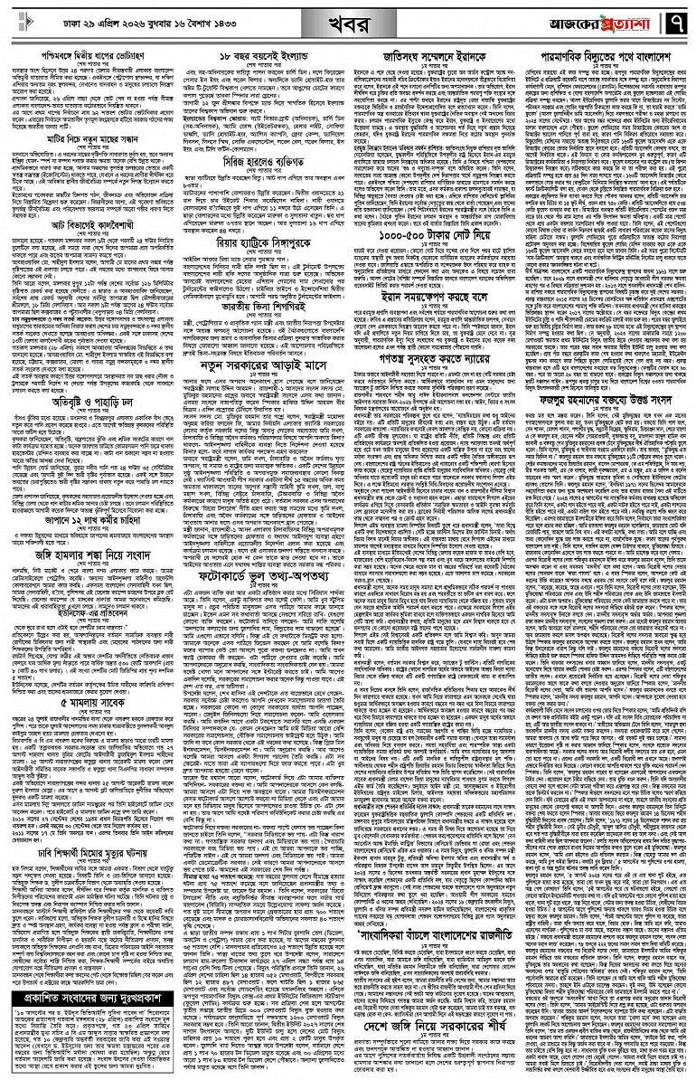 বর্ষ ৩৩ সংখ্যা ৩৫১ Page: 7 April 29, 2026 বুধবার ২৯ এপ্রিল ২০২৬ ঢাকা ১৬ বৈশাখ ১৪৩৩ বঙ্গাব্দ ১১ জিলকদ ১৪৪৭ রেজি.নং-ডিএ-১৩৯৯ Page 1Page 2Page 3Page 4Page 5Page 6Page 7Page 8 Thumbnails × বর্ষ ৩৩ সংখ্যা ৩৫১ পৃষ্ঠা-১।-প্রথম-পাতাপৃষ্ঠা-২।-দেশের-খবরপৃষ্ঠা-৩।-বিদেশের-খবরপৃষ্ঠা-৪।-উপ-সম্পাদকীয়-পৃষ্ঠা-৫।-স্বাস্থ-ও-পরিচর্যাপৃষ্ঠা-৬।-খেলাধুলাপৃষ্ঠা-৭।-খবরপৃষ্ঠা-৮।-শেষের-পাতা << First << 6 7 >> Last >> Hide পৃষ্ঠা-১।-প্রথম-পাতাপৃষ্ঠা-২।-দেশের-খবরপৃষ্ঠা-৩।-বিদেশের-খবরপৃষ্ঠা-৪।-উপ-সম্পাদকীয়-পৃষ্ঠা-৫।-স্বাস্থ-ও-পরিচর্যাপৃষ্ঠা-৬।-খেলাধুলাপৃষ্ঠা-৭।-খবরপৃষ্ঠা-৮।-শেষের-পাতা পৃষ্ঠা-৭।-খবর